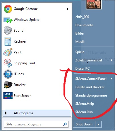 mein Classic Shell ist plötzlich etwas komisch siehe screen 1...