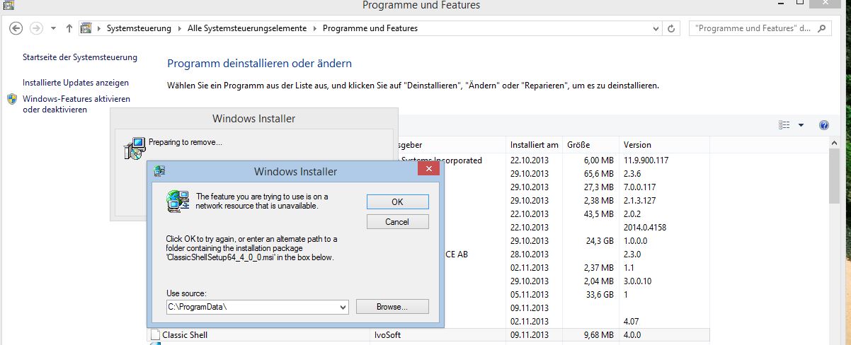 Daher wollte ich es deinstallieren oder neue Version installieren.. aber es kommt immer diese Meldung (Screen 2)