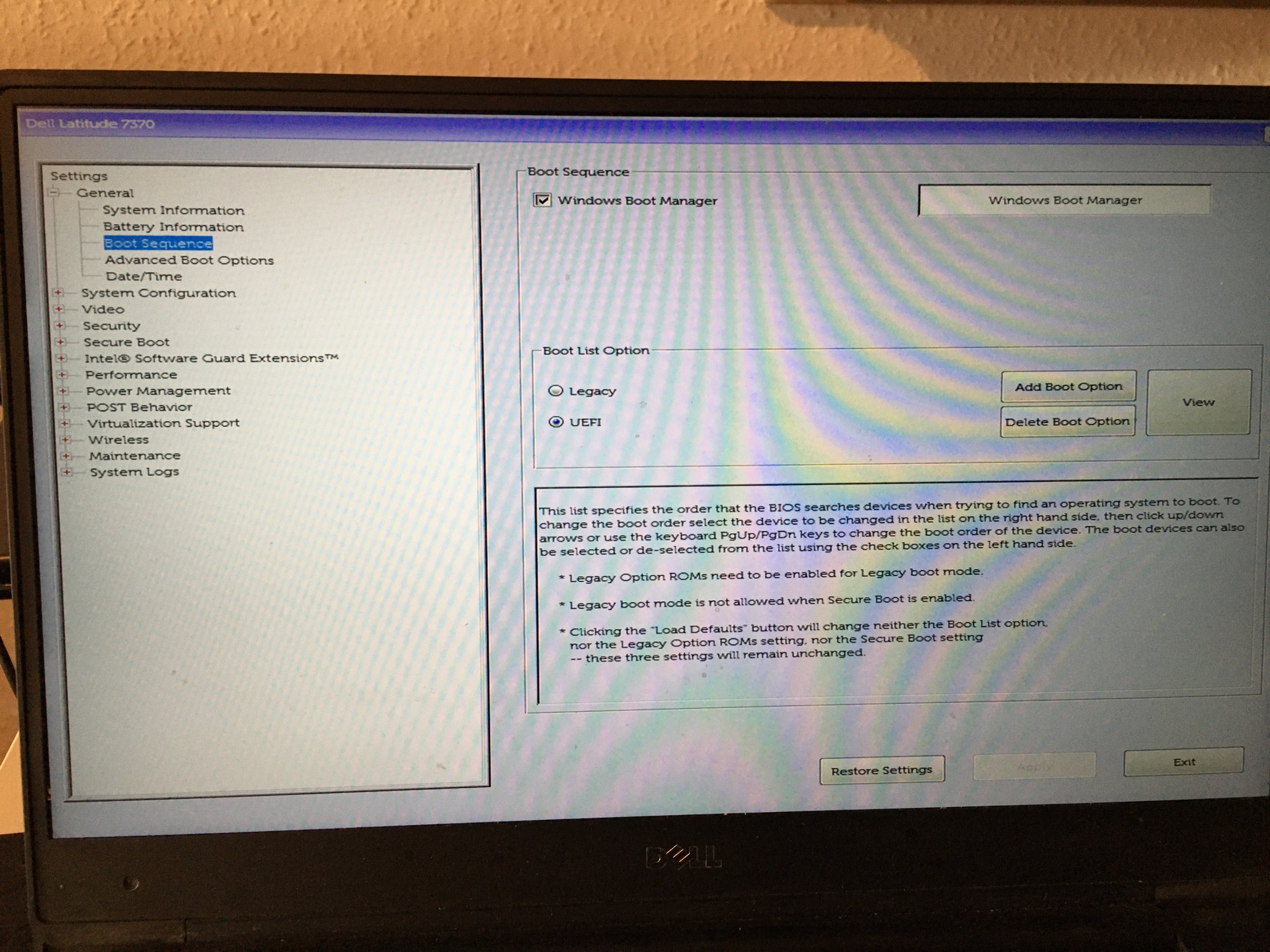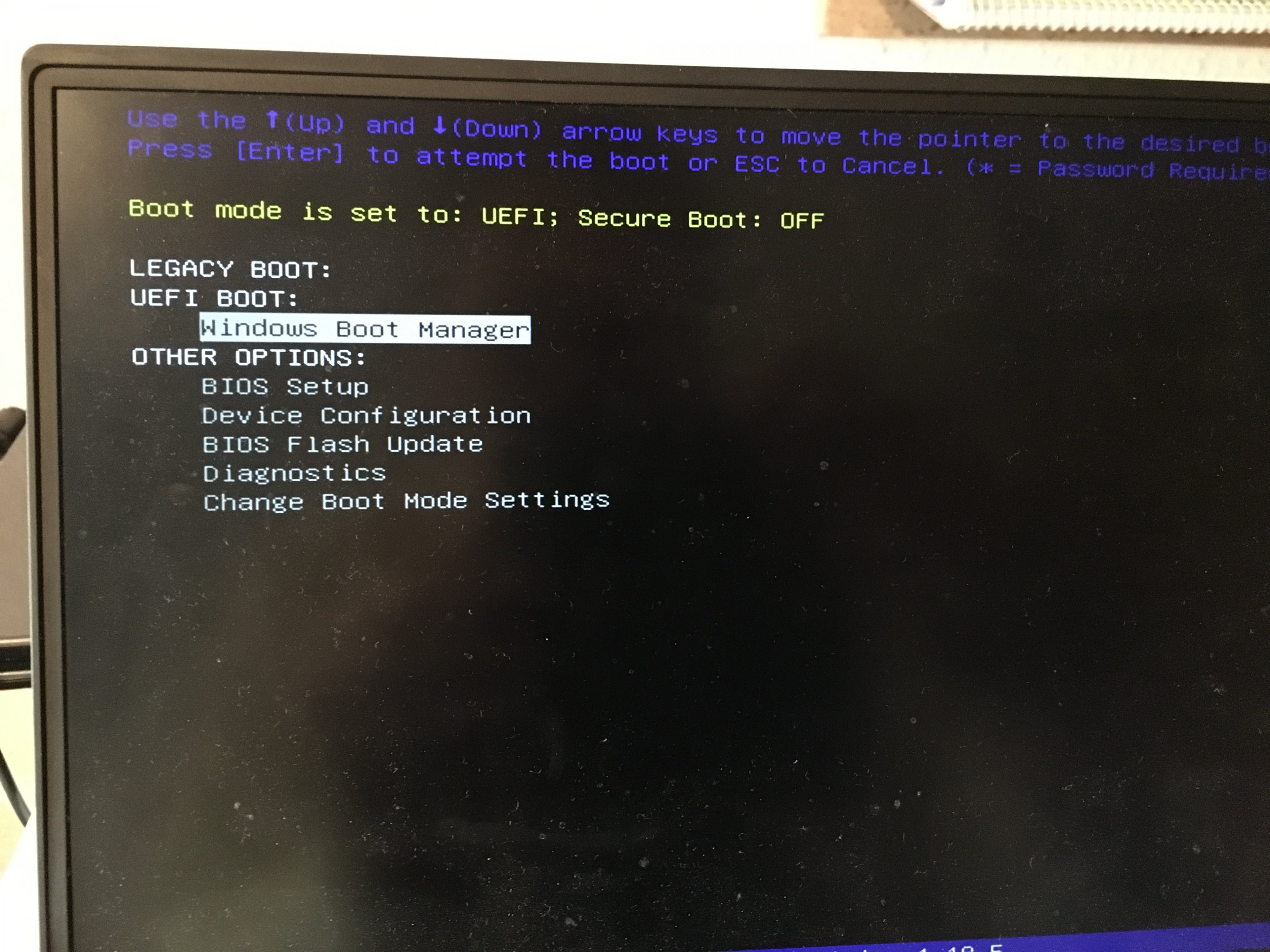 Unter "Boot Sequence" ist nur der Windows Boot Manager zu sehen, vor dem Clean Install war die SK Hynix SC308 SSD hier zusätzlich zum Windows Boot Manager zu sehen.