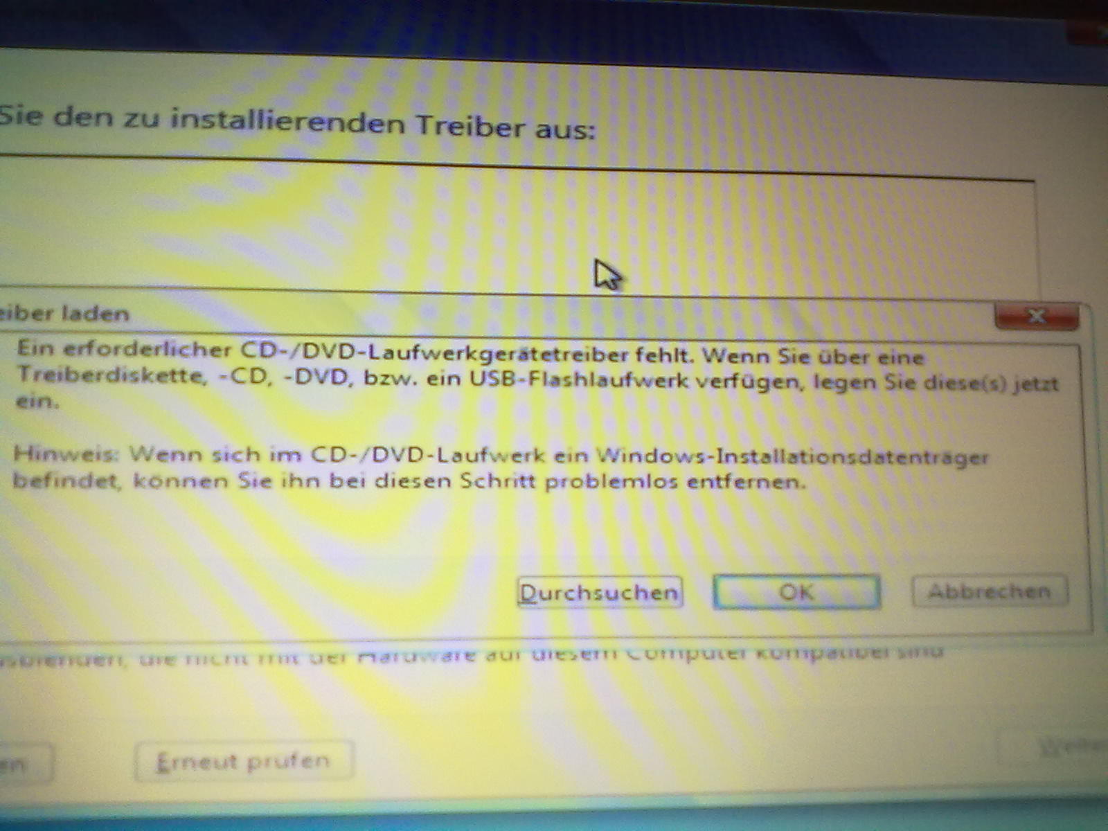 Das irgendwelche Treiber nicht auf der DVD gefunden werden können und es deshalb nicht möglich ist, die Installation durchzuführen.