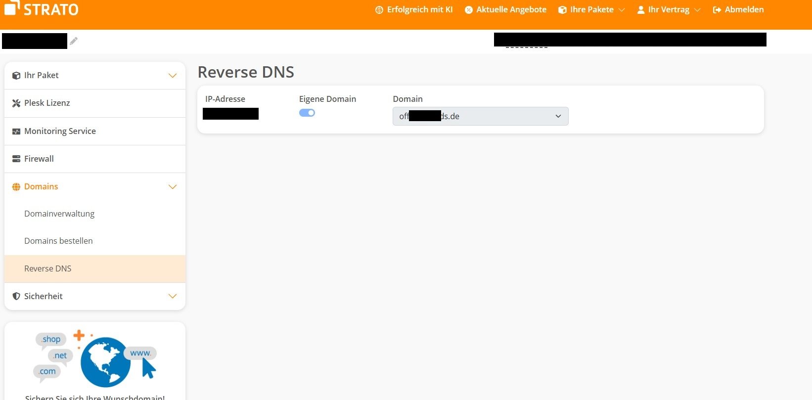 Aktuell steht meine Domain.de in der Reverse DNS bei Strato und hätte diesen gerne auf mail.domaine.de gesetzt. Scheint aber nicht zu funktionieren weil überhaupt nichts verändert werden kann. Ob es funktioniert wenn ich die Namenserver wieder auf Strato umstelle möchte ich nicht testen weil es dann noch länger dauert und wie schon gesagt der Meinung bin es damit nichts zu tun hat.