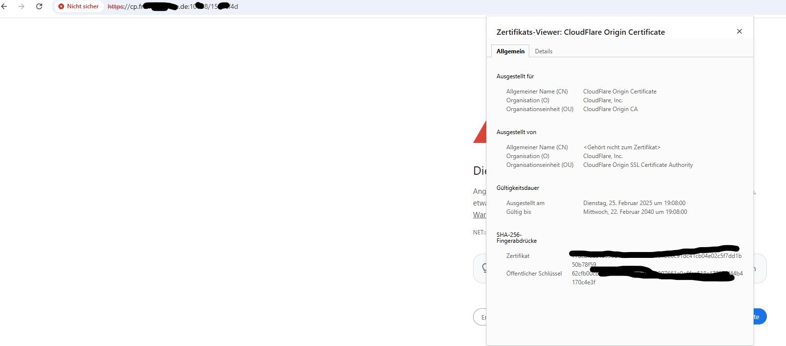 Die Origin Zertifikate sind ausschließlich für Server, die hinter dem Cloudflare Proxy liegen.