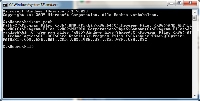 gib mal den Befehl "set Path" ein. Was steht da?