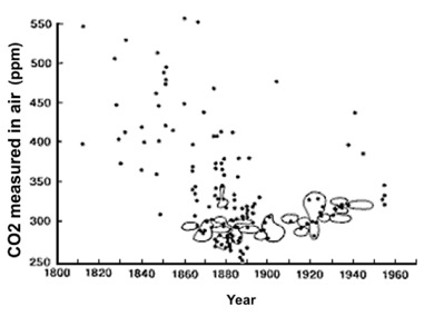 Die eingekreisten Werte wurden verwendet, um auf den Wert von 280 ppm vor der Industrialisierung zu kommen. Was ist mit den anderen Werten?