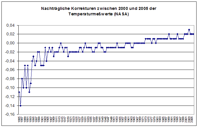 Interessant war auch, dass das Goddard Institute for Space Studies (GISS) nachträglich Messwerte für Durchschnittstemperaturen nach oben korrigiert hat, damit die Werte besser zu den Aussagen Al Gores passen. Zufällig war der Leiter des Instituts ein Fürsprecher und Unterstützer von Gore. Warum die Werte nach oben korrigiert wurden, wurde nicht offen gelegt.