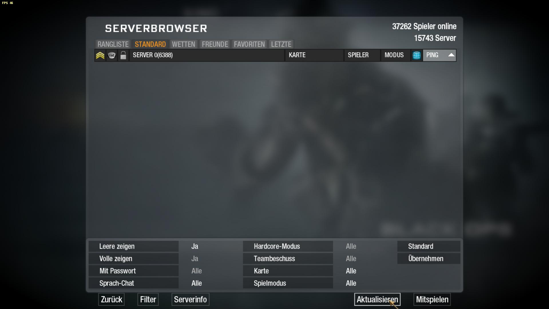 Mir werden nämlich im Serverbrowser keine Server angezeigt. Dies tritt meistens dann auf, wenn ich das Spiel zum 2. Mal nach einem Rechnerstart starte. (Sehe Bilder)