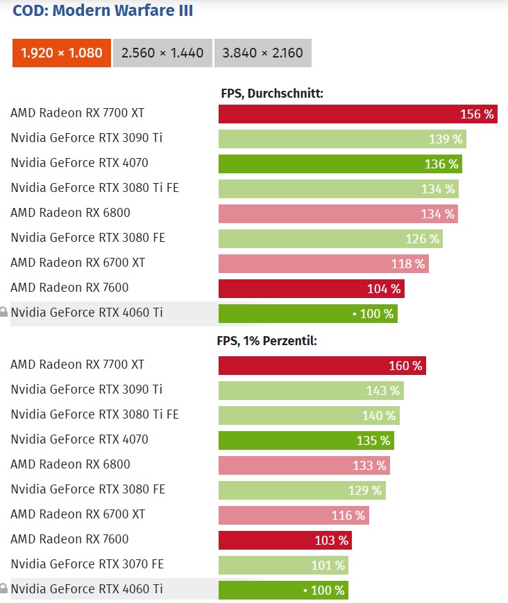 @Mike_MTL: Ich glaube wir reden etwas aneinander vorbei. Du hast auf jeden Fall recht, dass das P/L-Verhältnis der 4090 im Vergleich mit der 7900 XTX in CoD:MW3 furchtbar ist.