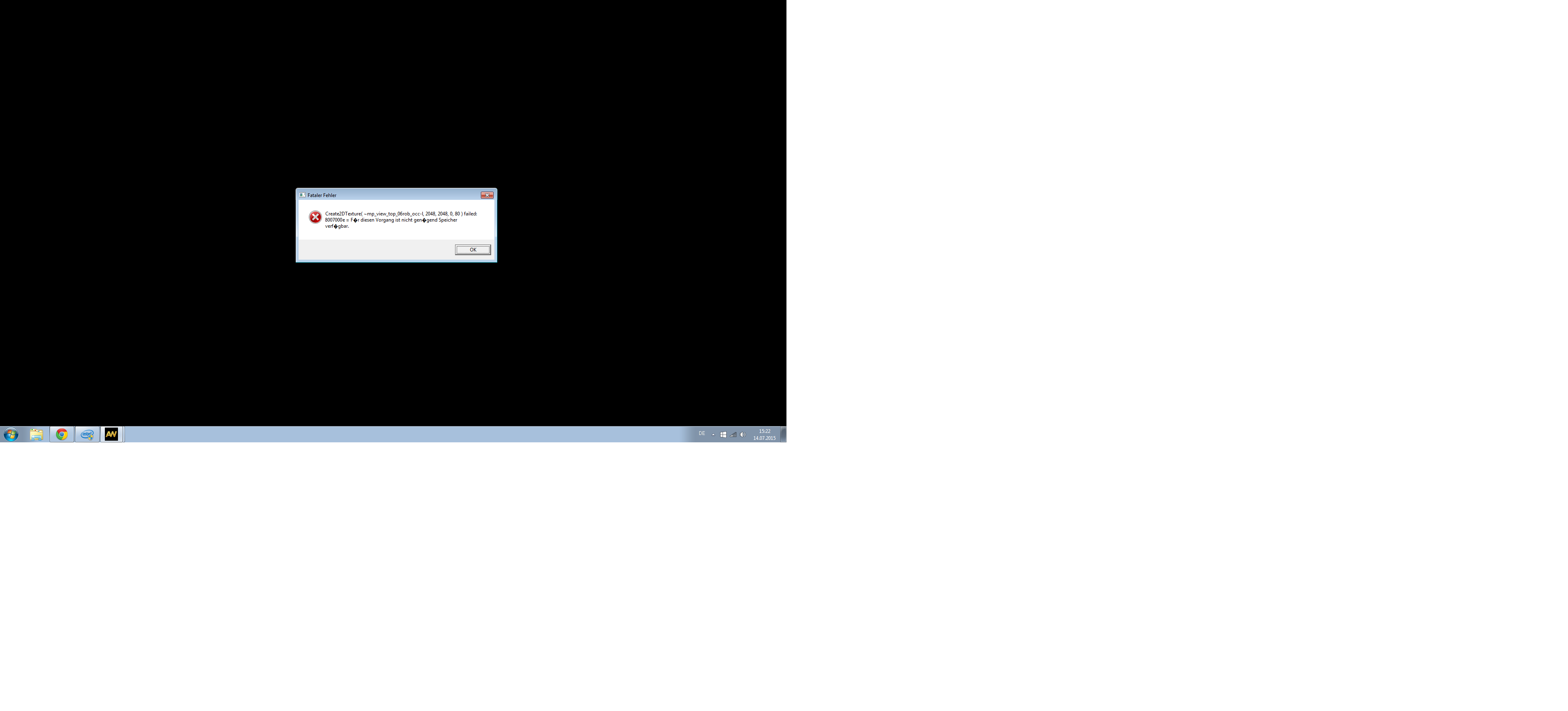 Das ist dann natürlich nervig, aber nach dem Neustart von CoD läuft wieder alles flüssig. Aber jetzt hab ich das Problem, wenn ich spielen will, dass sich das Spiel überhaupt nicht erst öffnen lässt, sondern nach ca.einer Minute schwarzem Bildschirm abstürzt und folgende Fehlermeldung anzeigt: