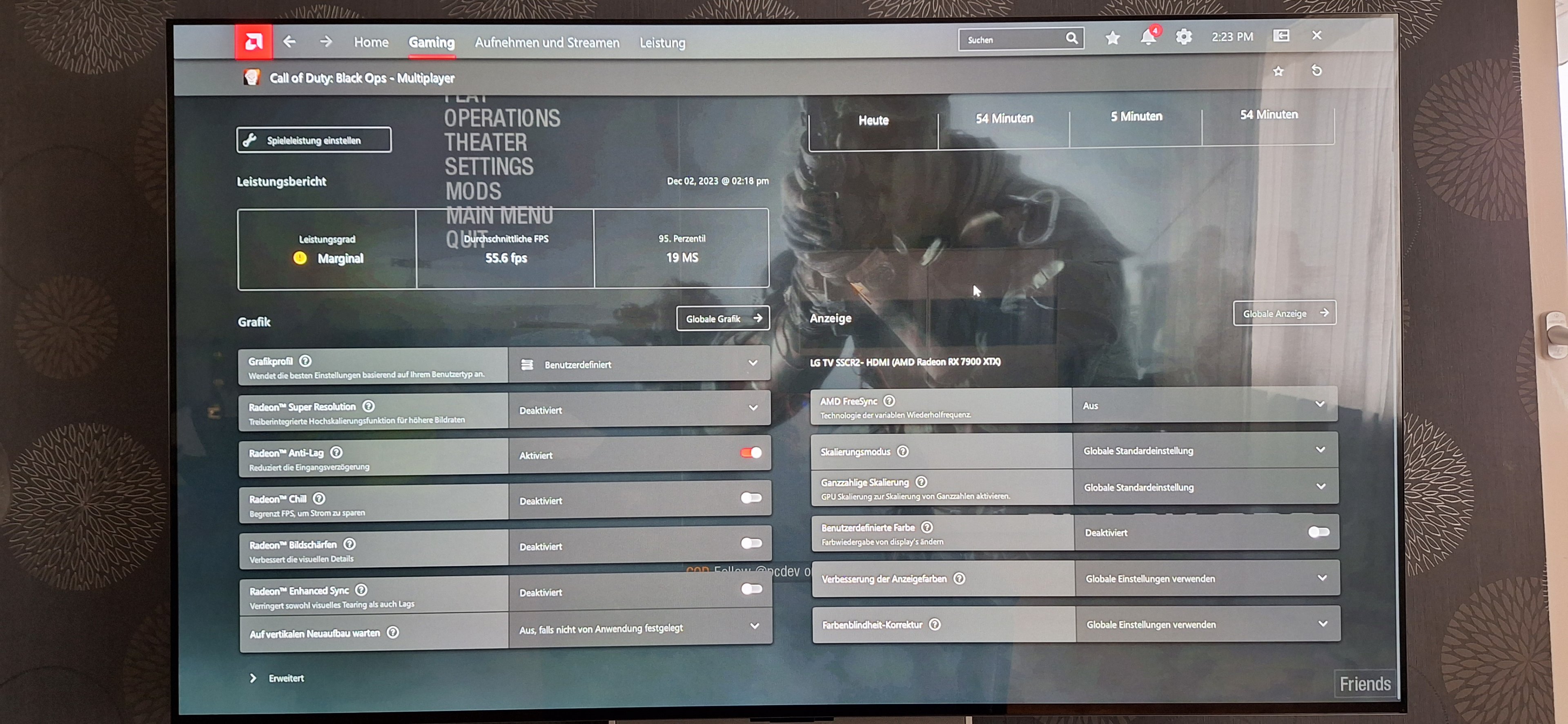 In der GPU-Software hab ich "AMD-FreeSync" auch ausgeschaltet (half auch ein gutes Stück).