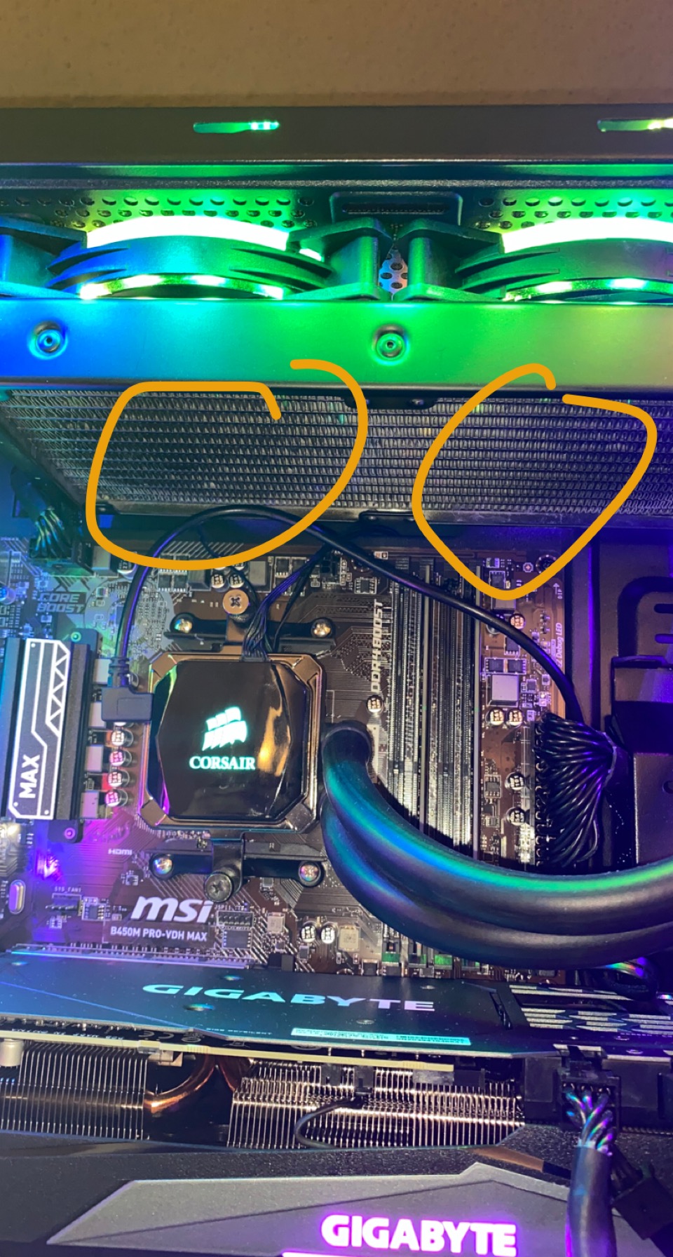 Bei diesem Build würde ich auch den Radiator in die Front packen, damit dieser nicht mit der warmen Luft von der Grafikkarte auskommen muss. Damit wird die Kühlleistung auch nicht wirklich besser.