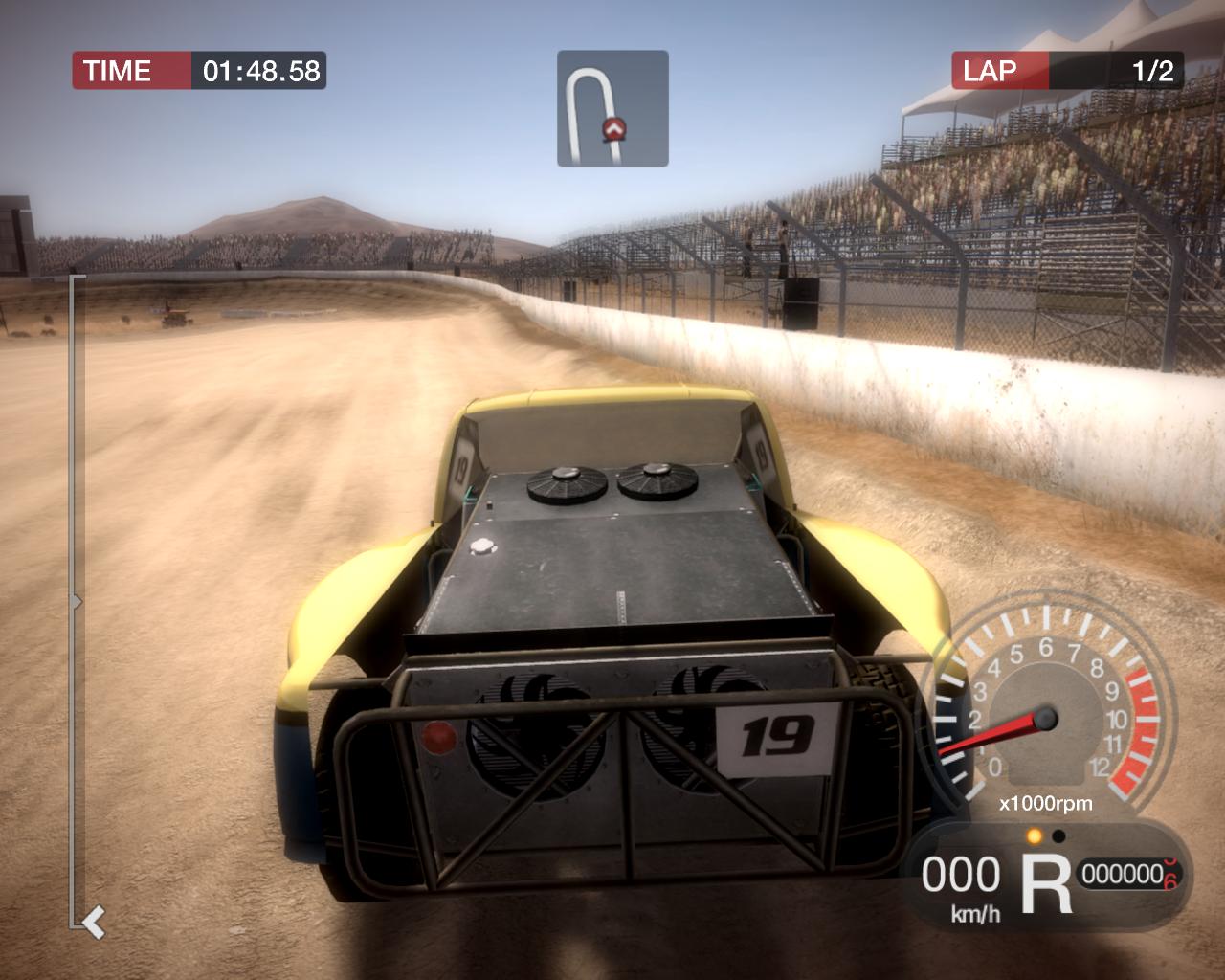 Seht ihr auf dem Bild (bei 0kmh aufgenommen) irgendwelche vernünftigen Texturen? Außer wenige Zentimeter um das Auto herum ist alles Grafikmatsch. Und die Zäune und die Tribüne (soll das 4AA sein?), ein Beispiel für Komplettversagen der Grafik, und die Zuschauer, ein Graus.