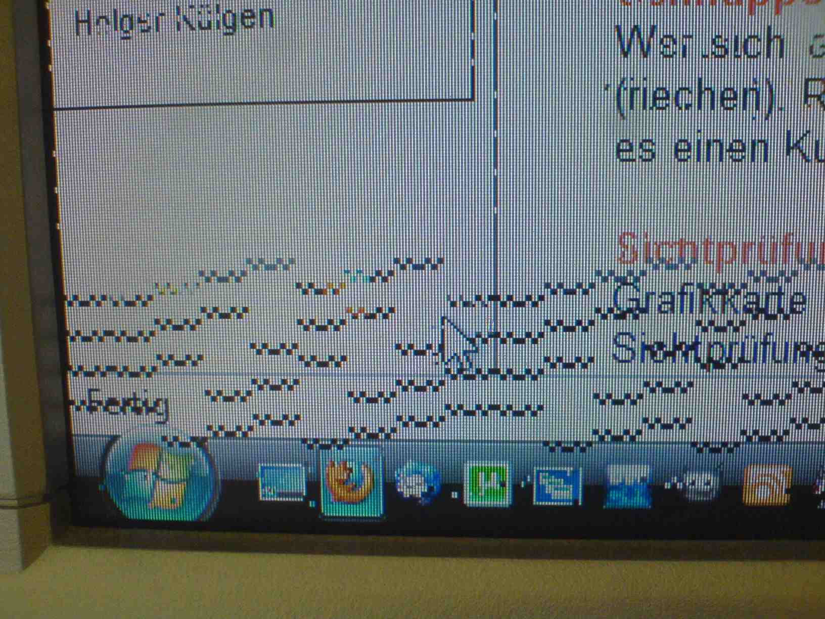 Ich habe folgendes Problem, dass wenn ich seit neustem meinen Pc starte er vorerst normal hochläuft und kurze Zeit später folgende Bildfehler/Einfrierungen geschehen.