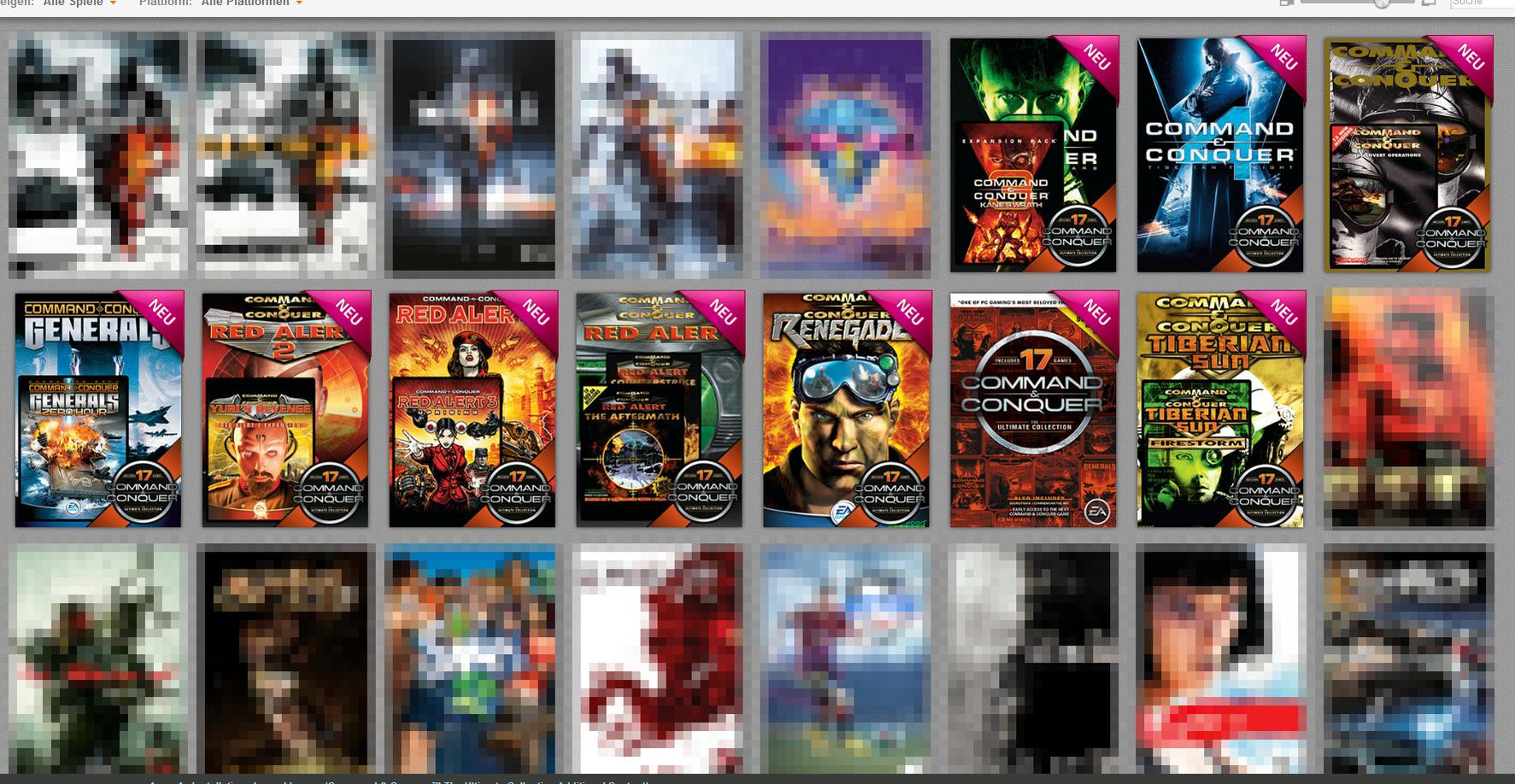 Und wozu sind eigentlich die anderen Spiele "unkenntlich" gemacht? Sieht doch jeder dass es Battlefield, Crysis, Sims, DragonAge, MirrorsEdge usw sind.