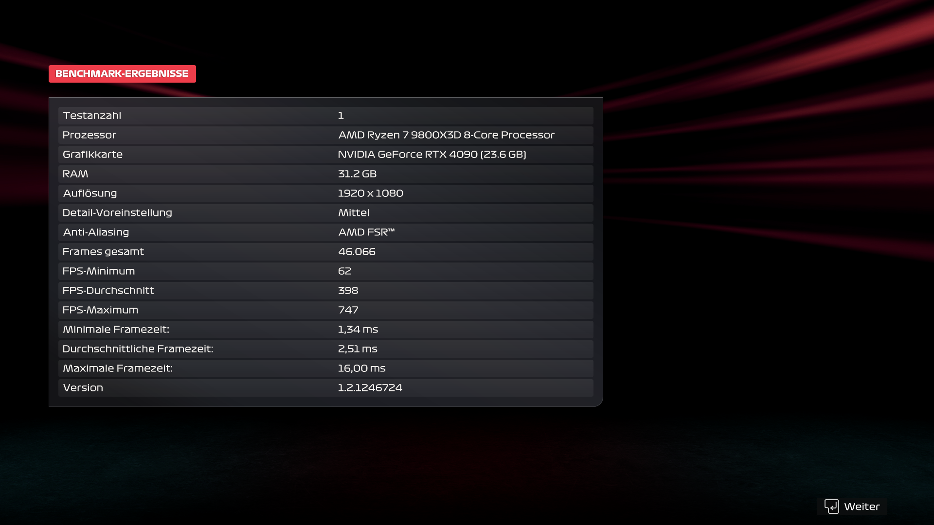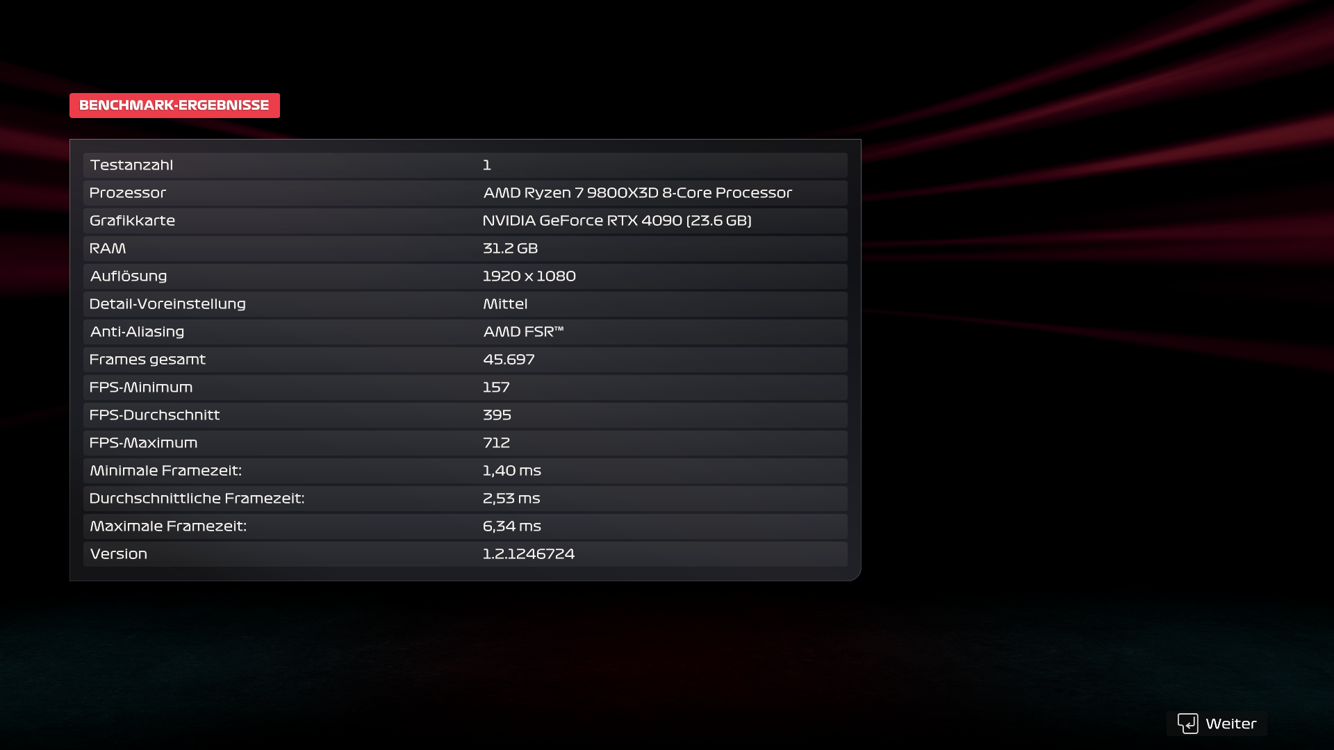 3.440 × 1.440, Preset „Ultrahoch“, FSR 3 Quality, Full Raytracing, FG Aus: 92