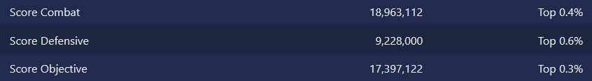 Aber fast on par ist ja kein Ding. Ich hab allerdings schon Leute gesehen mit Verhältnis 4:1 oder schlimmer was Combat vs Ojective angeht, da weißt dann wie die Spielen. Die findest nicht an den Fahnen.
