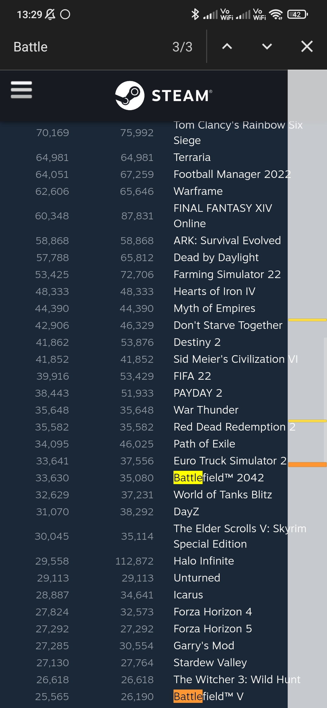 Spielen es denn gerade viele oder wenige? Die Frage kann man schlecht ohne Vergleich z.B. zu vorherigen Battlefield Teilen beantworten, da es die aber meiner Vermutung nach nicht bei Steam zu kaufen gab, könnte schlicht jede Spielerzahl je nach Gusto als viel oder wenig gewertet werden.