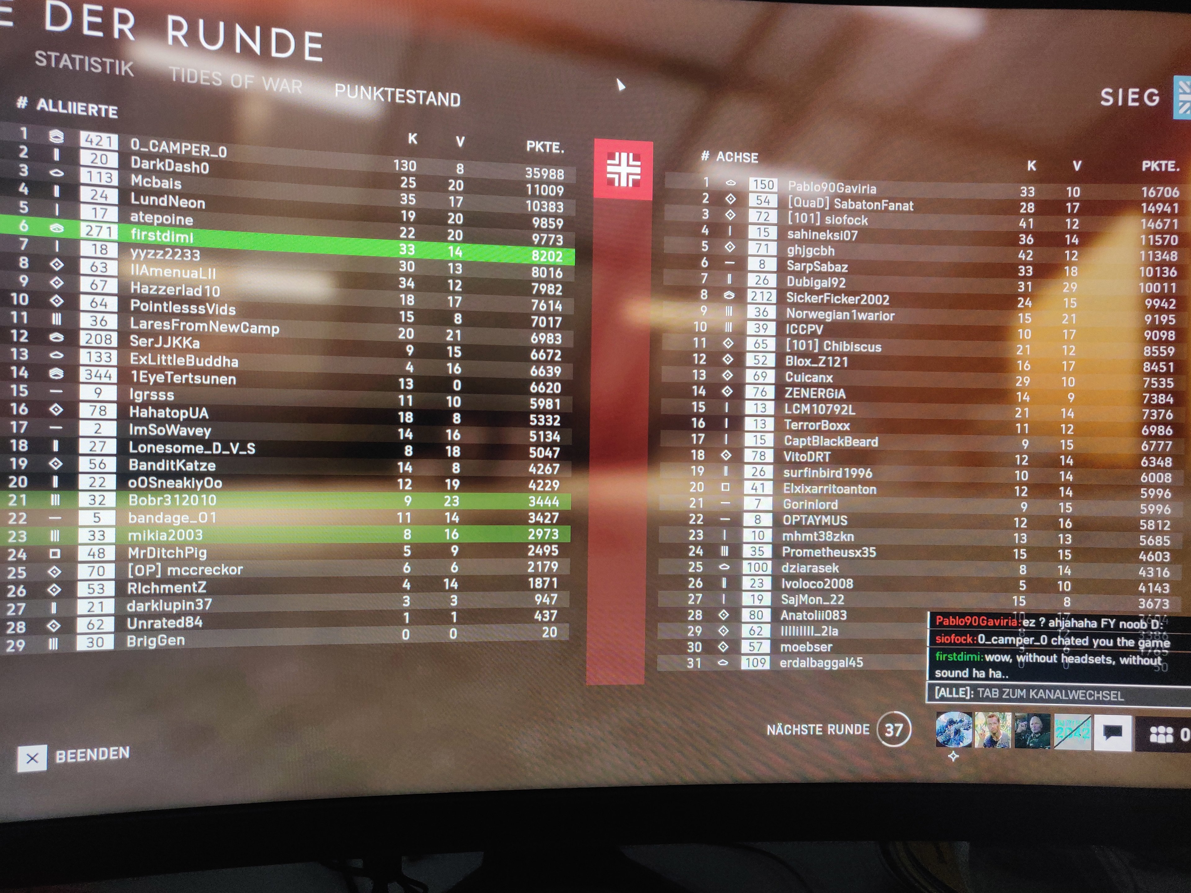 Warte auf'm neuen Monitor ( ein geiles Teil) und um den Postbote hören zu können habe ich eine runde taub, ohne Headsets und Sound gespielt und...wir haben mit 4:0 gewonnen 🤦