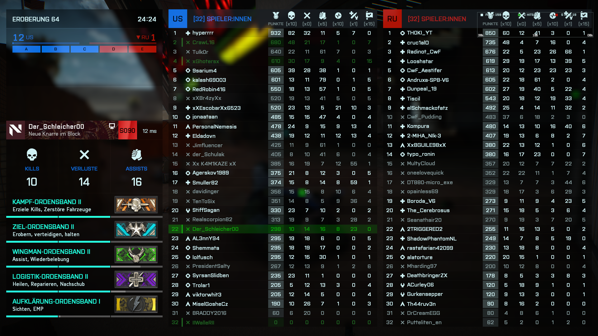 5 Runden gespielt ... 5 verloren. Der Beste hatte 20:15 und bei den rennen gute 10 Mann rum die 3 mal gestorben sind haber 30 bis 80 Kills haben