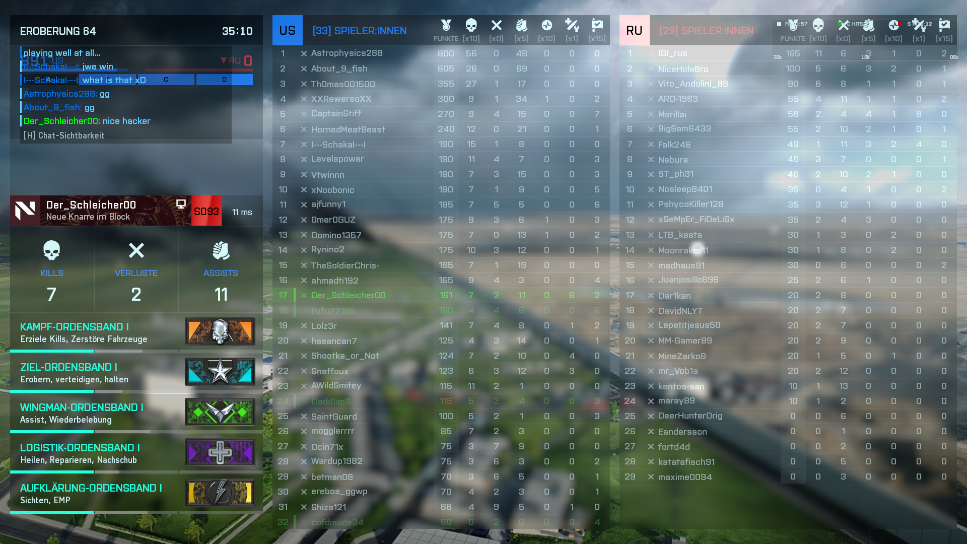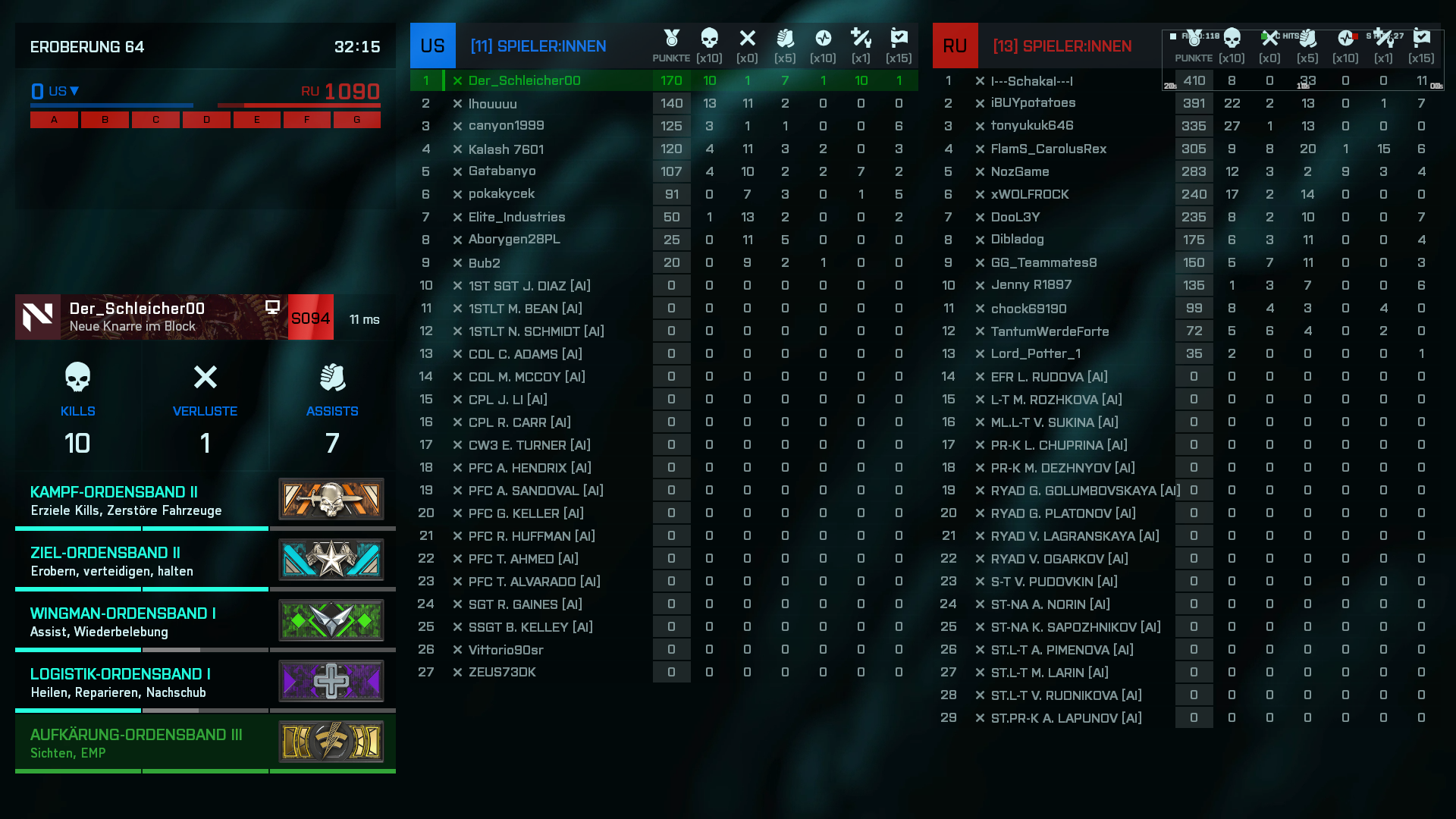 Davor die Runde hatte ich ähnliche Stats...volles Squad mit "Highlevels" auf Konsole.