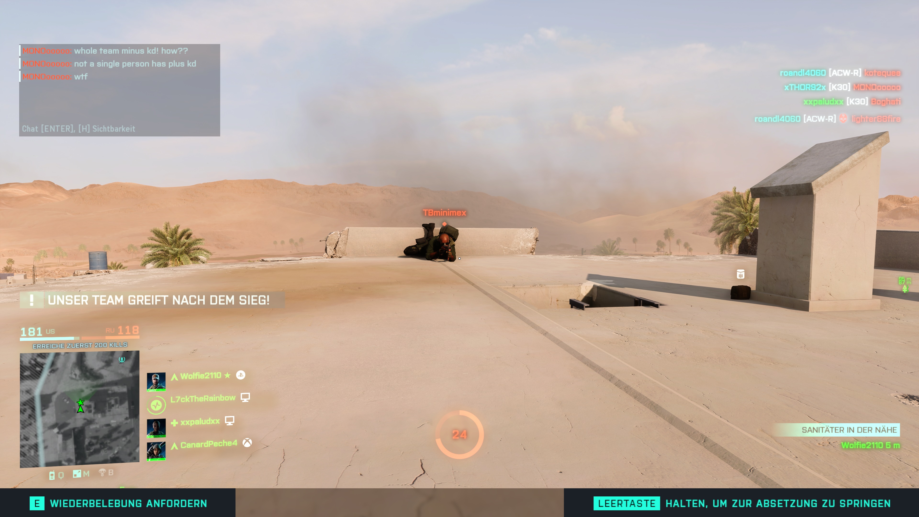 Spieler aus meinem Squad spawnen an meiner Position, hampeln wie Idioten rum und verraten mit ihrem gehüpfe dem Gegner meine Position. Ergebnis: Wir werden alle gekillt.