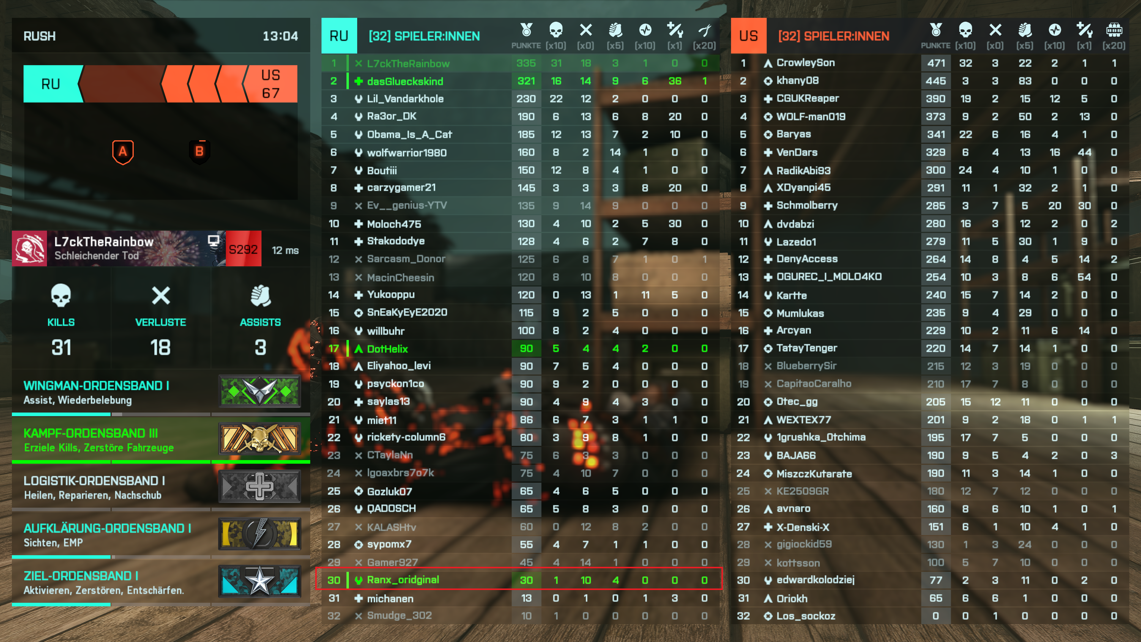Aber selbst dann wird man noch zensiert, weil ich mich über gewisse Dinge im Spiel aufrege. Ich habe auf jeden Fall keinen Spaß daran, wenn in meinem Squad Leute mit 2-30 & 4-44 Stats sind, die einen nicht reviven, nur in der Ecke liegen und mich die "Arbeit" machen lassen, aber dann die Punkte beim Sieg gerne mitnehmen.