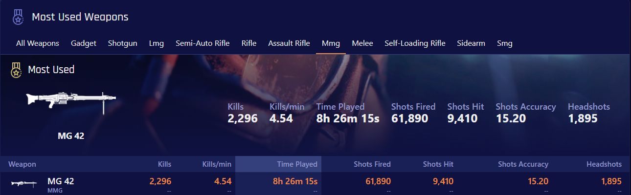 MG42 - 2296 kills in 8h