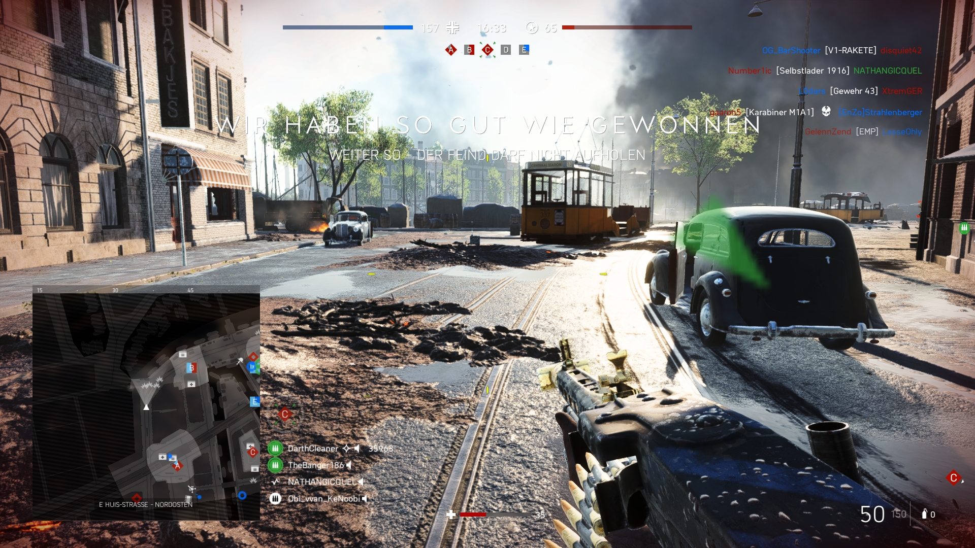Das halbe Team wartet im Spawnmenu auf die Panzer und der Gegner hält alle Flaggen.
