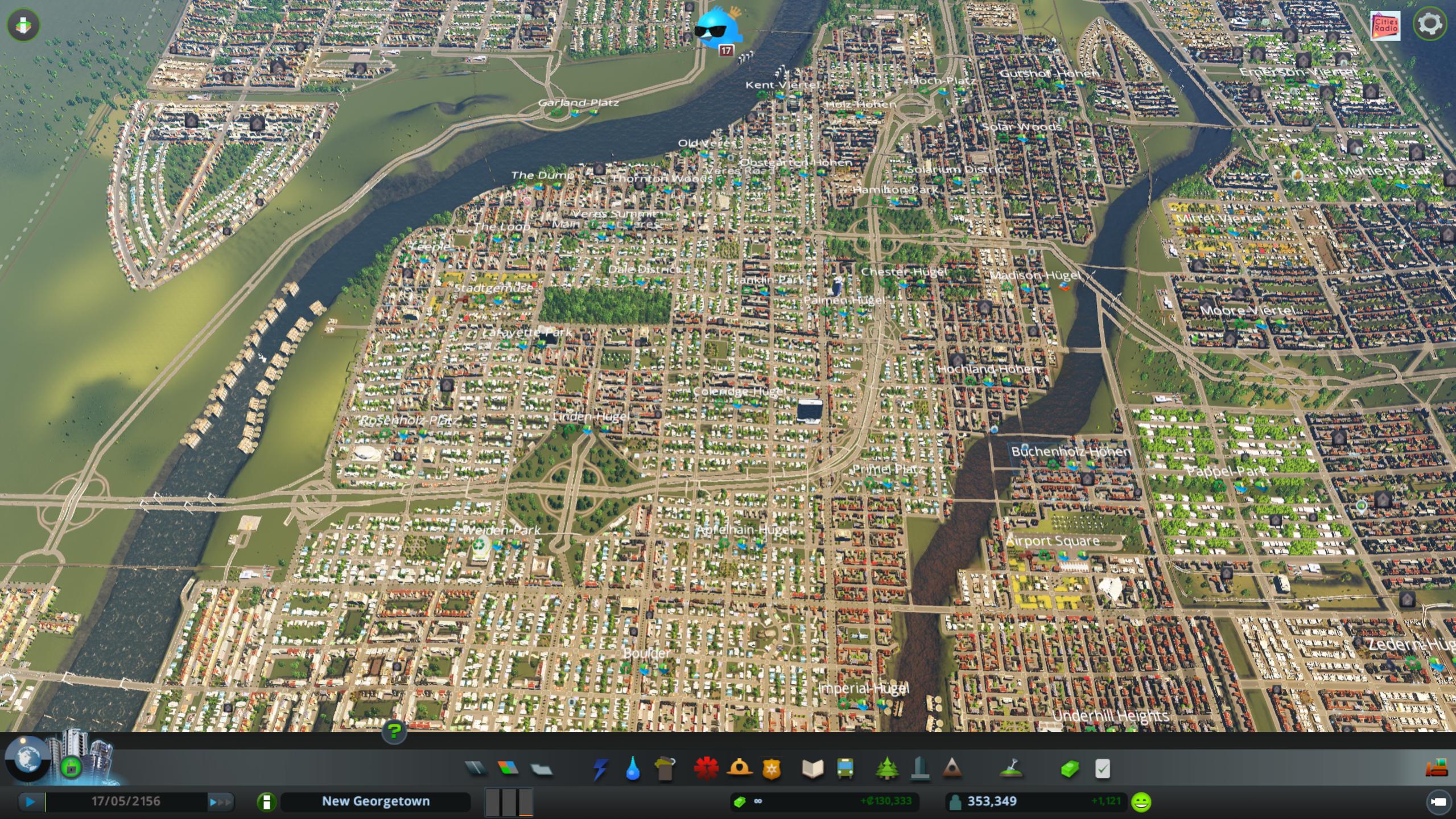 Schöne habe ich auch nicht gerade (bzw. ist es überhaupt erst meine zweite Stadt gewesen), eher versuche ich es halbwegs organisch oder natürlich gewachsen aussehen zu lassen. Falle aber hier und da auch wieder in Reißbrettformen zurück, aber das war bei der Stadt speziell auch nur zweitrangig. Will ja sehen, wann was wo warum zusammenbricht. Die Stadt baue ich schon nicht mehr weiter, wieder ein viel zu großes Industriegebiet gehabt, Bahnhof, viele Kreuzungen, exitus. Bei 33k zähflüssig, aber ok, bei 37k schon Smogalarm und bei 45k wären wohl selbst die Chinesen zu mir gekommen und hätten sich erkundigt, wie man mit so wenig Leuten soviel Verkehr erzeugen kann