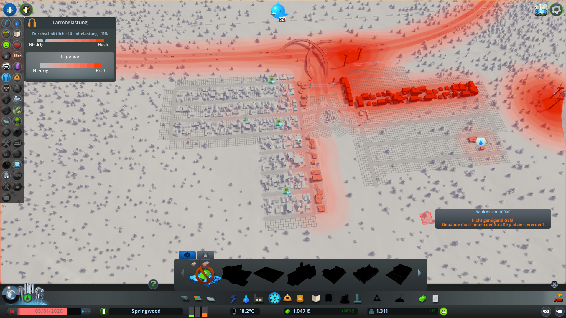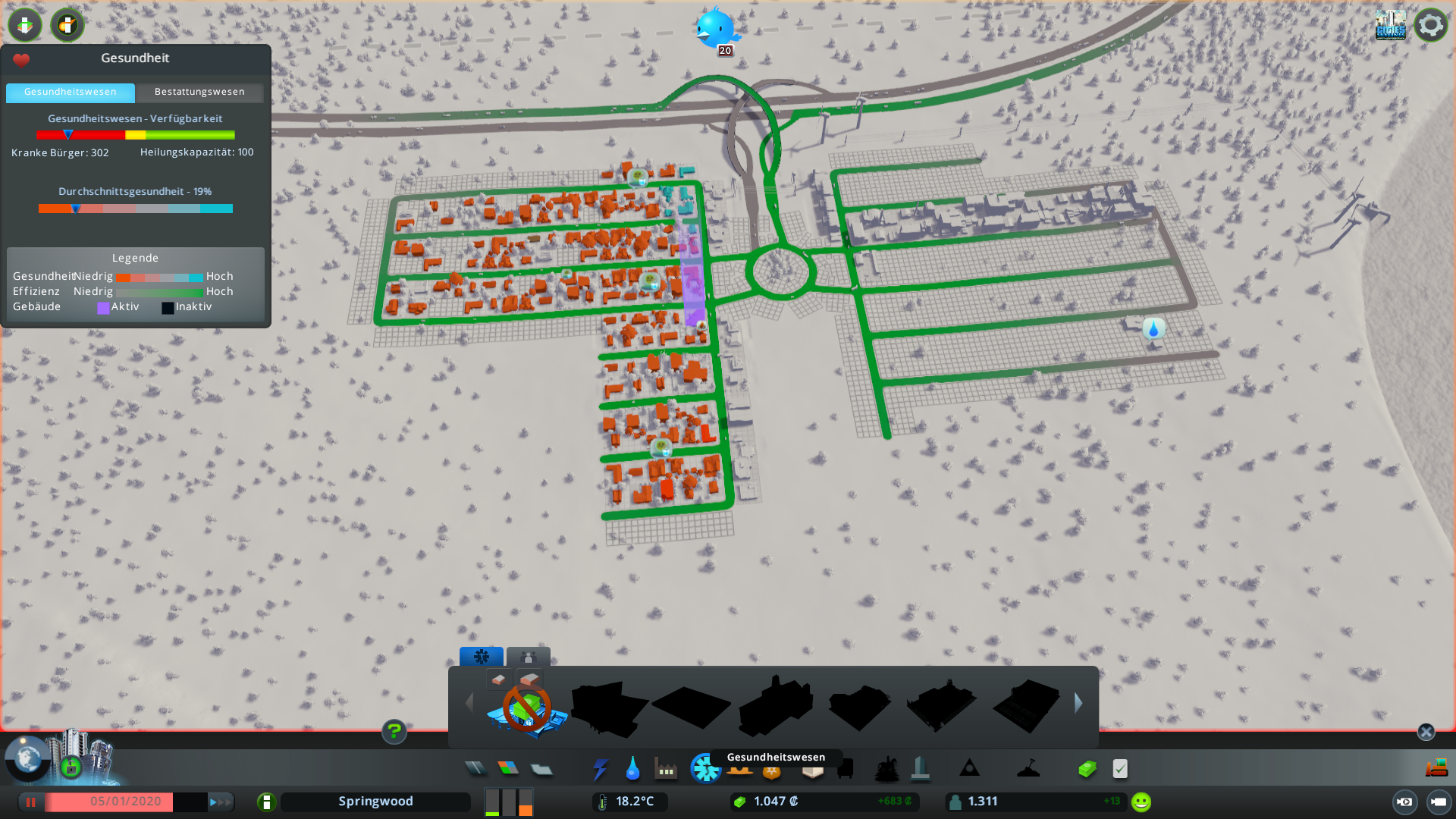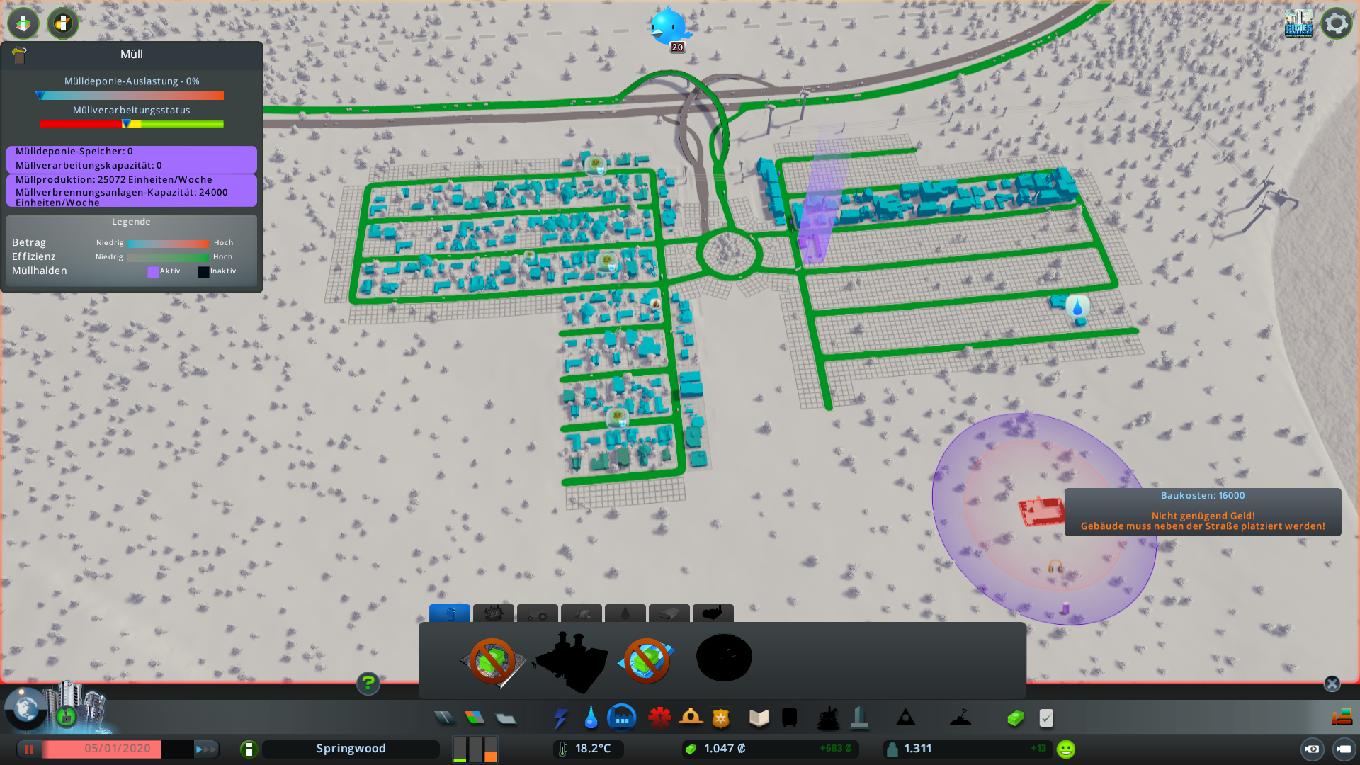 Optimal wäre, je nach Dichte der Bebauung für 2 oder 3 Felder ein Terminal zu haben. Sonst bekommst du irgendwann den Verkehrskollaps.