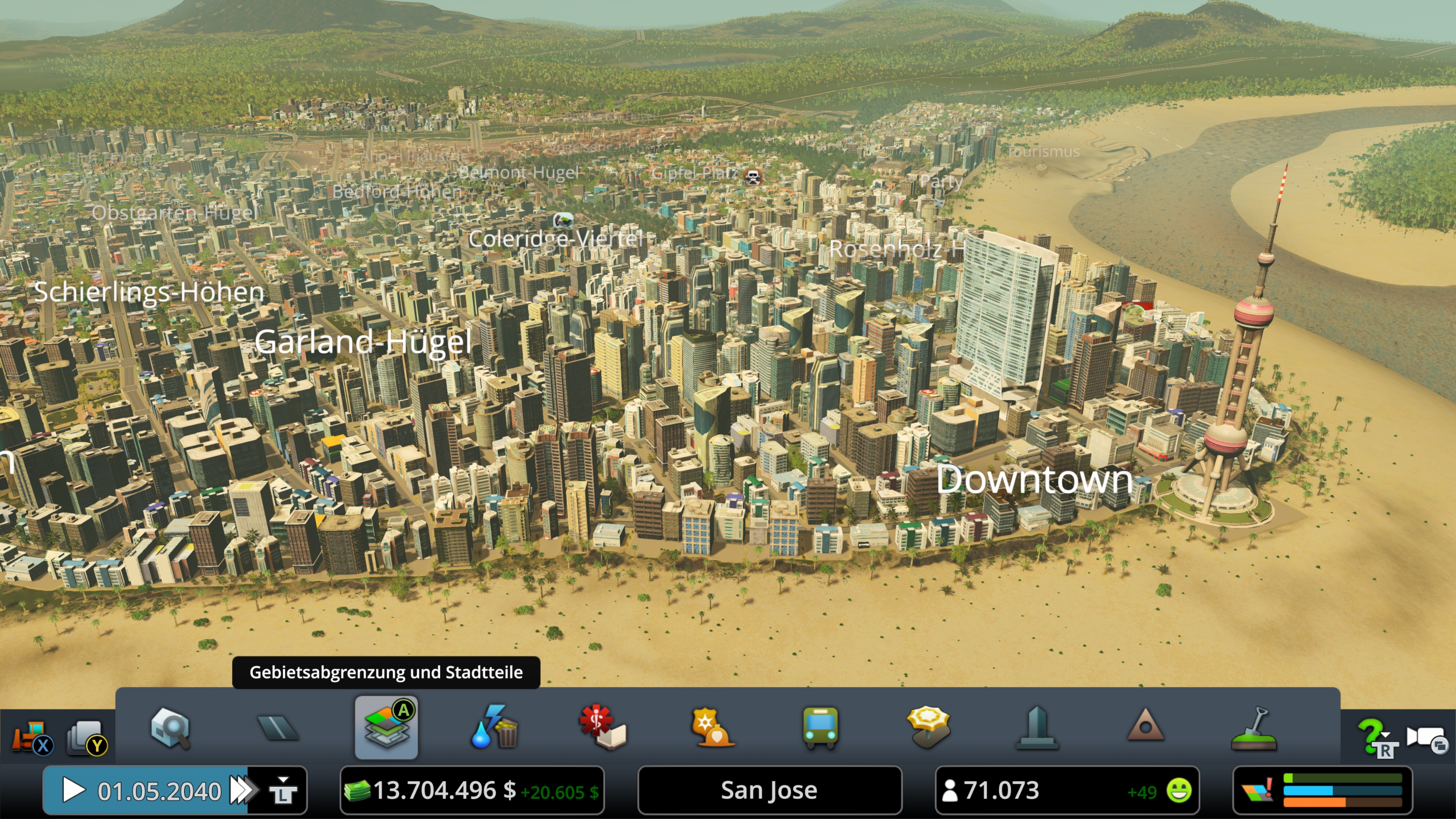 Auf der Konsole mit dem Basisspiel und einer wirklich einfachen Verkehrsmethode bin ich jetzt offiziell mit 70.000 Einwohnern eine Megalopolis. Habe also alle Meilensteine in Bezug auf Bevölkerung erreicht.