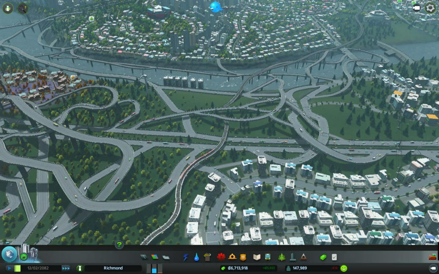 Man muss auch verstehen, wie die Strassen funktionieren. Die 6spurigen dienen halt eher als Zubringer um dann den Verkehr zu verteilen. Die Kreisel sind eigentlich ziemlich kontraproduktiv beim derzeitigen pathfinding.....da sie den Verkehr nur nach rechts rauslassen....selbst wenn man nach links will. Das bedeutet dann auch, dass alle dann meist auf Spur1 bleiben. Das gilt aber nur für Strassenkreisel. Highwaykreisel sind in Ordnung, weil die funktionieren wieder, da auf Highways der nächsten Ausfahrt ausgewichen wird, wenn man die nicht benutzt.