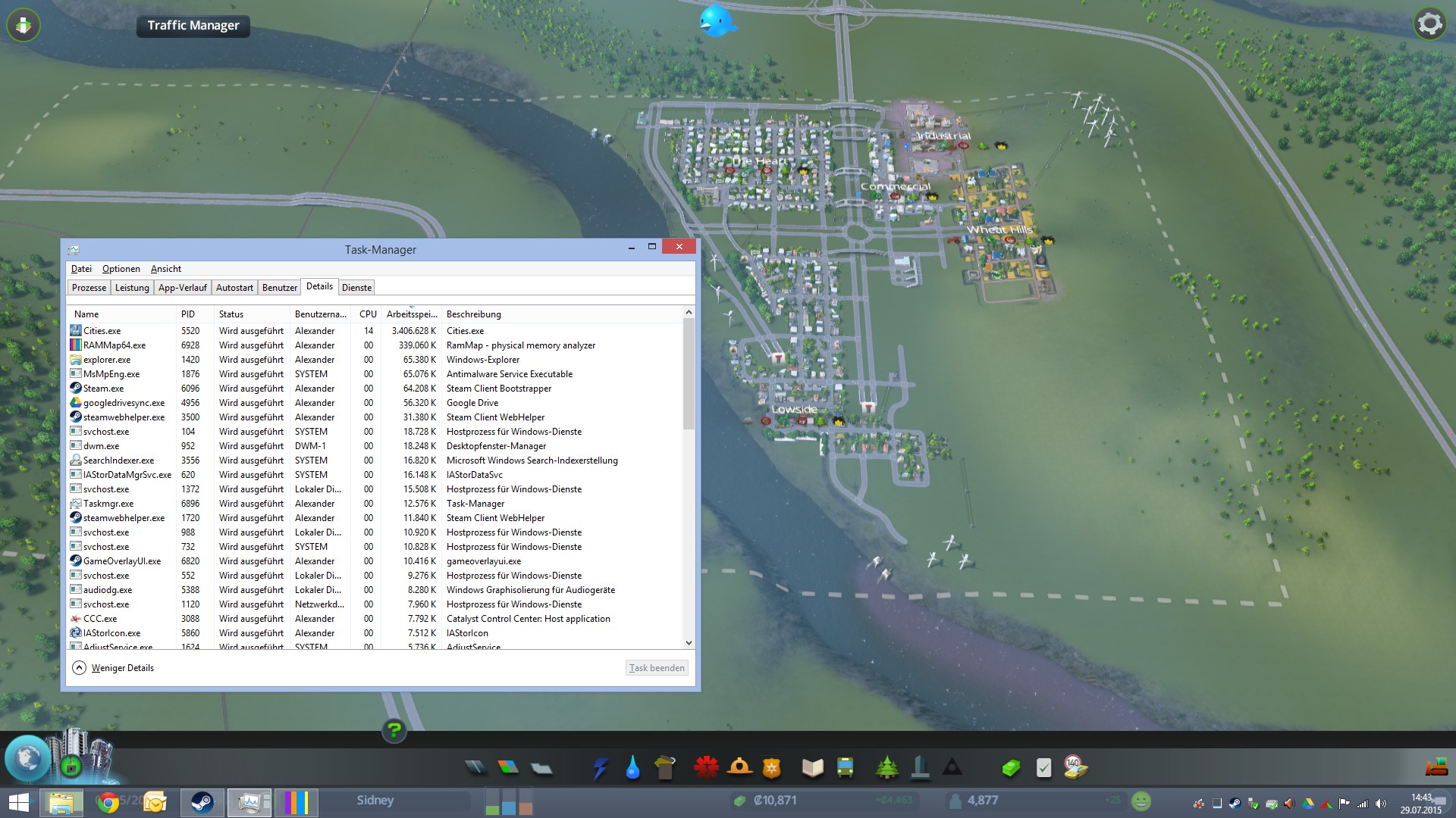 Cities Skylines friert an- und ab mal kurz ein. Maus ist weg, Spiel hängt und die Musik läuft weiter. Bis dann das Game wieder normal läuft.