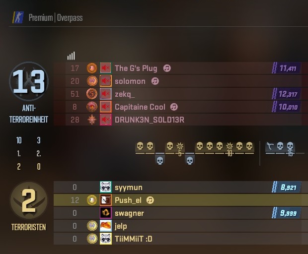 Gutes Elo-System. Btw, grün und blau von den Gegnern hatten 2.6k Faceit-Elo. :daumen: