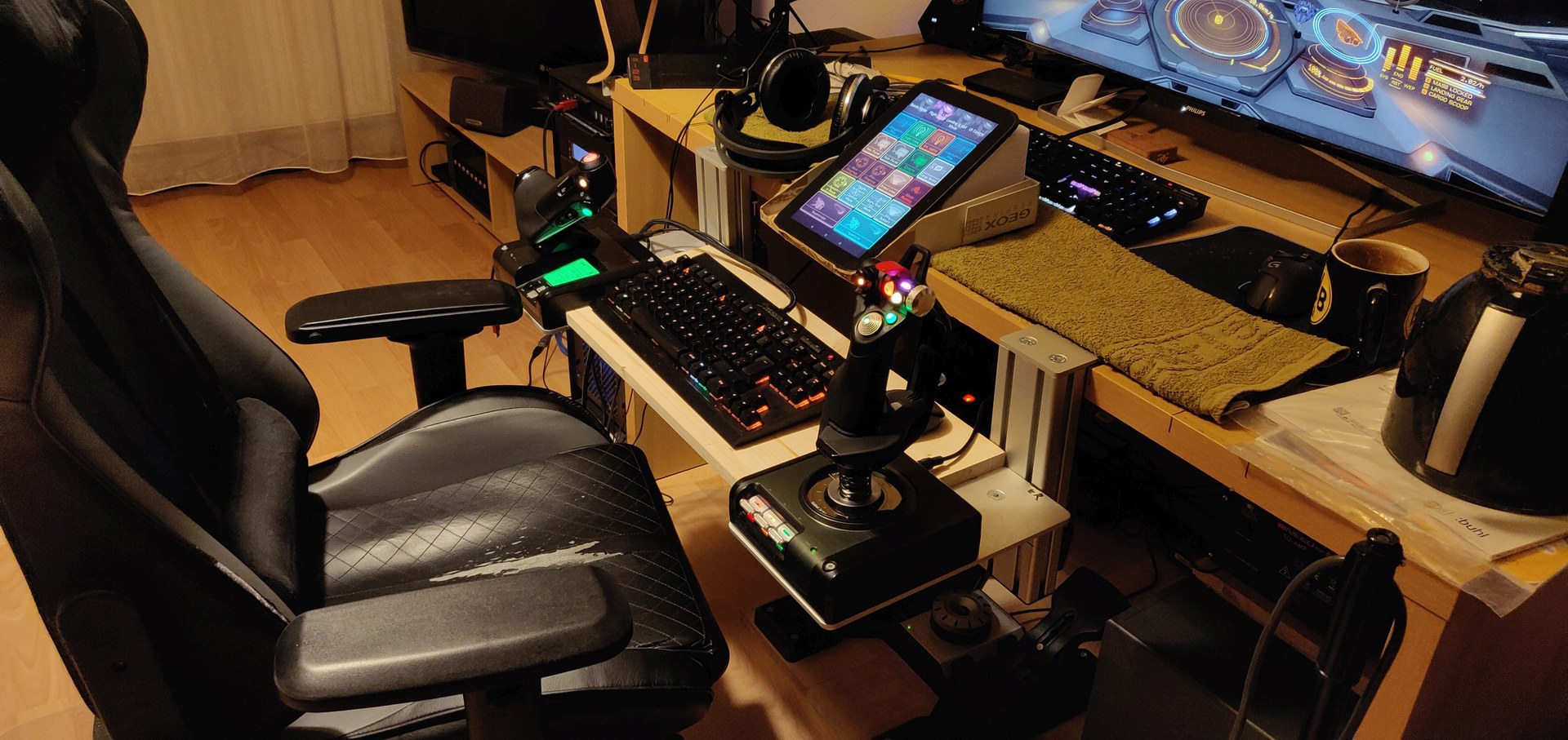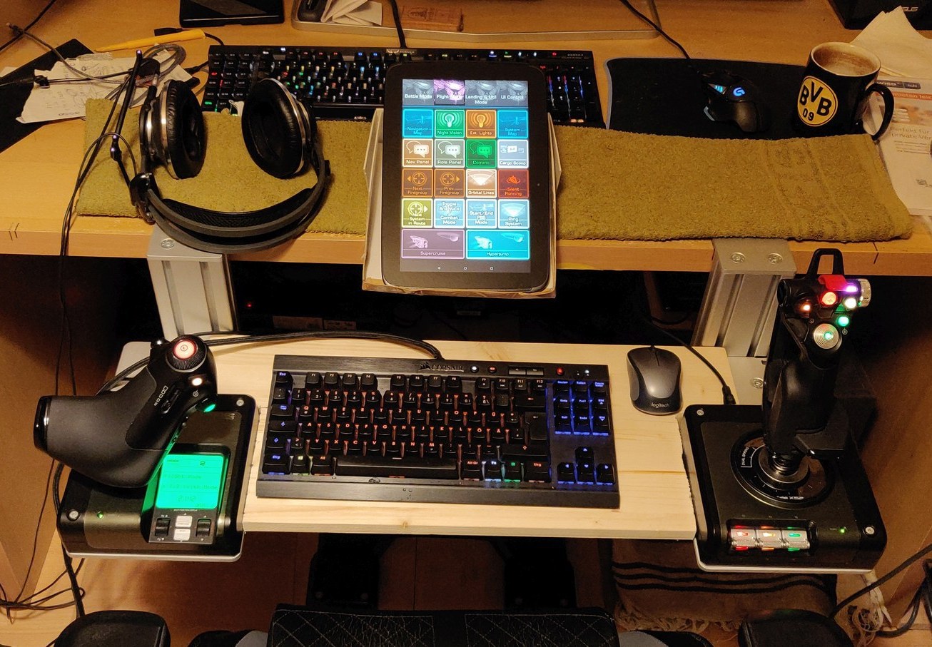Ein ganz anderes Problem stellte sich aber für mich auch noch. Während der intensiven Fliegerei die letzte Woche und speziell am Wochenende hat mir mein rechtes Handgelenk gemeldet, daß die Ergonomie meiner Cockpitkonstruktion nicht optimal für lange Flüge ist und das ich da was tun sollte wenn ich keinen Ärger möchte. Langfristig wird es wohl mal auf ein SimRig hinauslaufen, aber dafür habe ich aktuell keinen Platz. Also habe ich bei