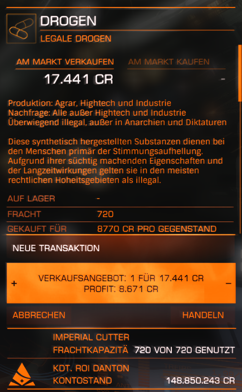 Momentan siehts wohl nach noch vor heute Abend aus. Alternativ gibt es seit wenigen Stunden ein anderes HandelsCG, bei dem nicht der CG Gewinn, sondern der Handelsgewinn für Erstaunen sorgt: 8k Credits/t. Das CG ist im System Cail.