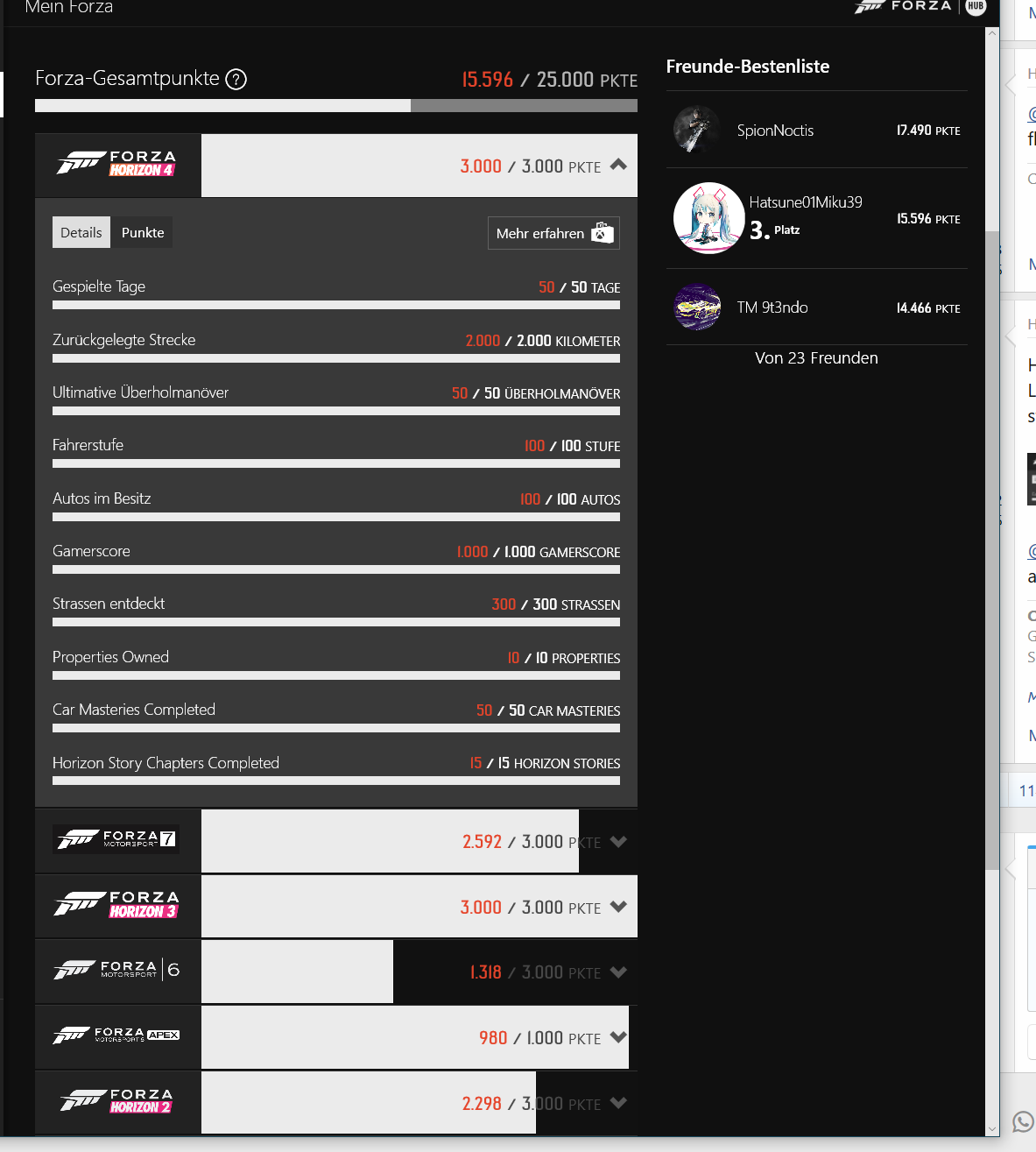 @Hatsune_Miku Kannst du mal im Forza Hub nachgucken, wie viele Autos bei dir unter "Car Masteries Completed" angezeigt werden?