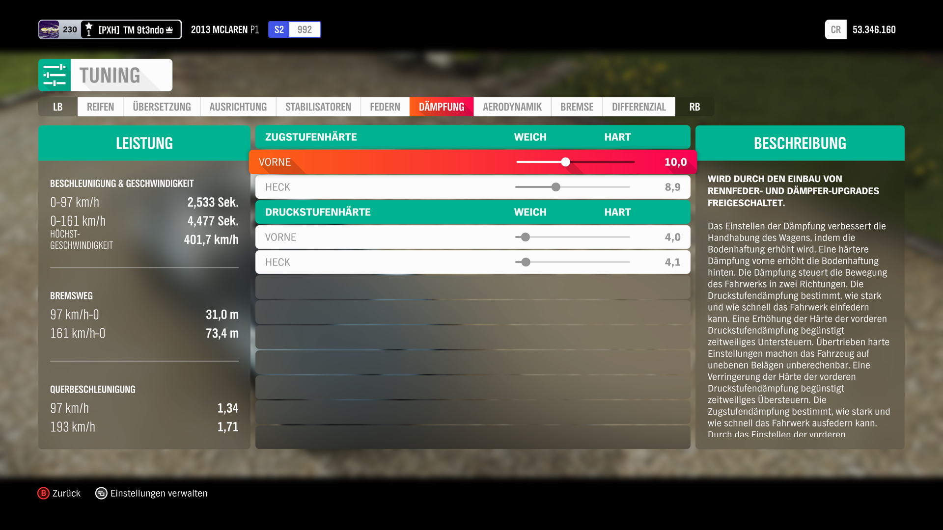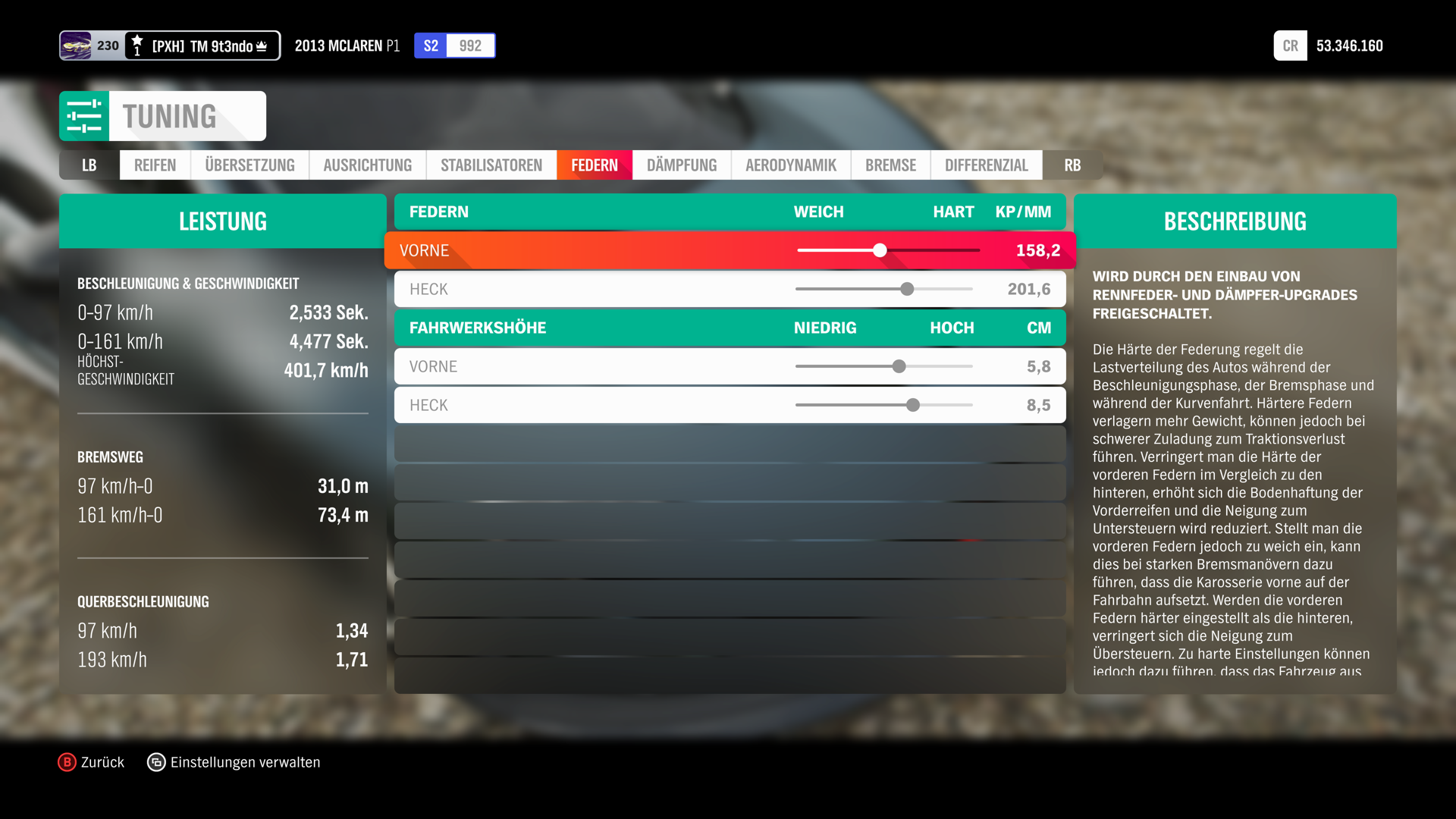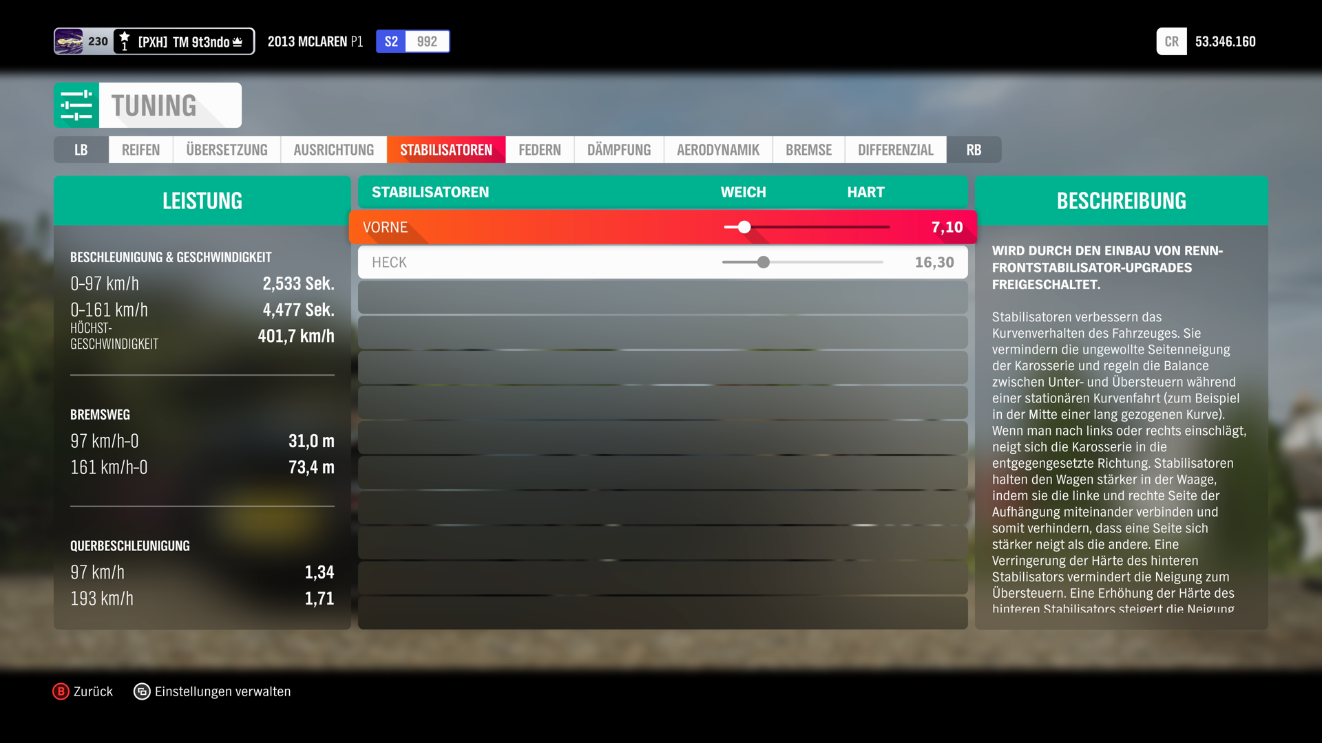 Danke 9t3ndo.9t3ndo schrieb:Hab mich mal nochmal an meinen P1 gesetzt. Hat jetzt einen LI von 992 (breitere Reifen). Hab das Tuning mal freigegeben: P1 GTR CB