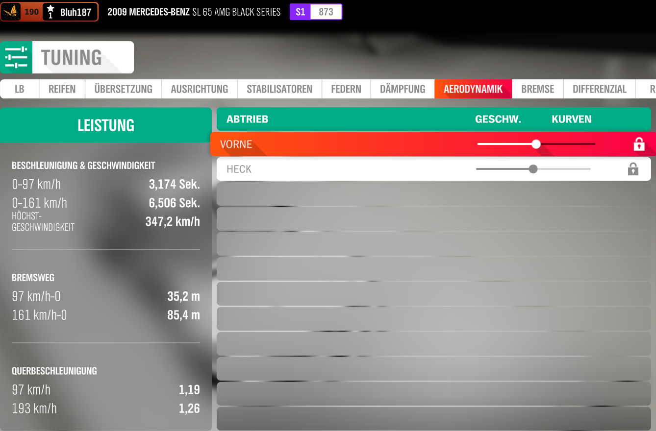 873LI ? Da ist noch Luft für sicher bessere und breitere Reifen und die Spoiler würde ich auch dran klatschen das gibt ne Menge mehr Grip in H4.