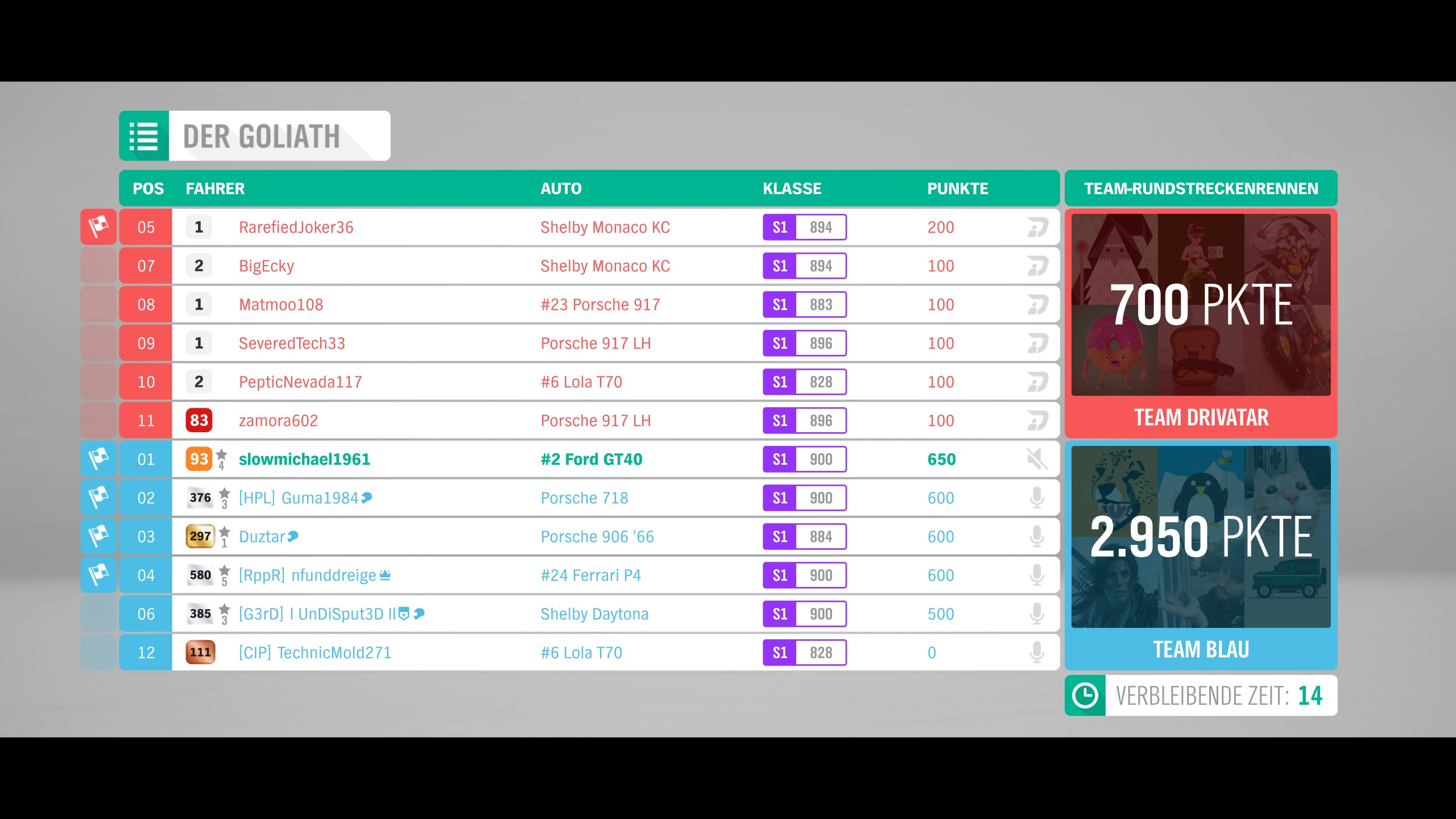 Bin mit meinem Rosa Schweinchen immer Zweiter geworden. Der Erste war auch immer der #2 GT40. Wie der abging war echt nicht mehr normal. Habs immerhin alle drei mal ins Ziel geschafft, wobei er beim Goliath auch immer wieder gewartet hat. 😅