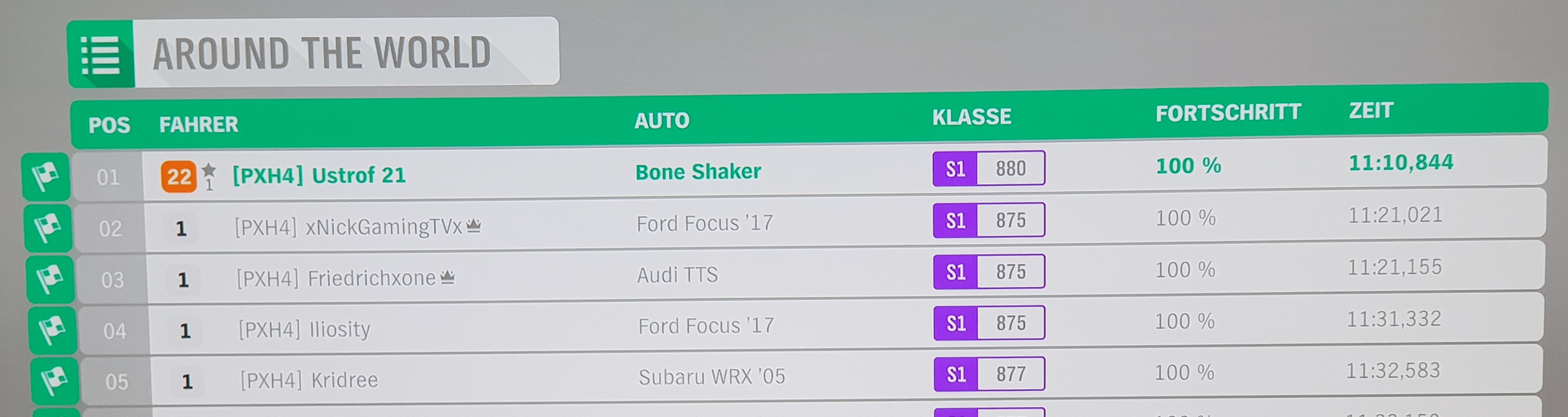 Aber, manchmal ist das auch nicht so wichtig. Habe mit S1 880 ne 11:10,8 auf Around the world gefahren, was besser ist als ich mit manchen 900-Wagen schaffe.