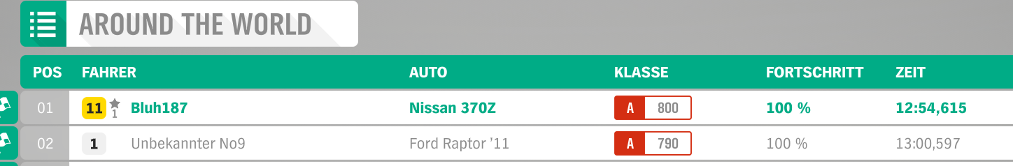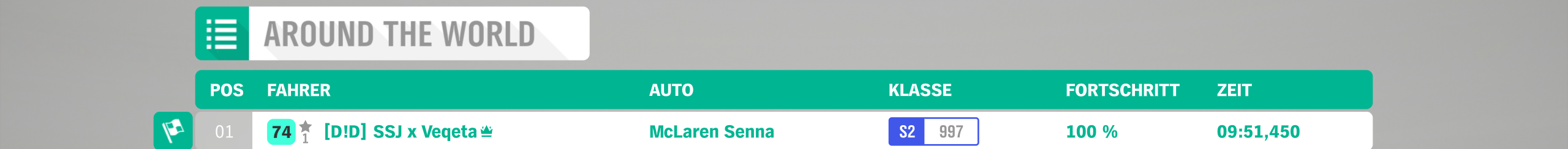 Hab mit dem Aston Martin Vantage GT12 (S1 900) eine neue Bestzeit bei meiner Teststrecke. Für Around the World fehlt aber einfach der Topspeed (295 Vmax)