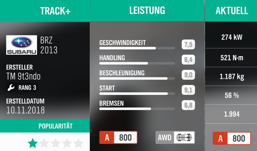 Den BRZ muss ich mir mal angucken, hab da das Drift Club Tuning drauf.