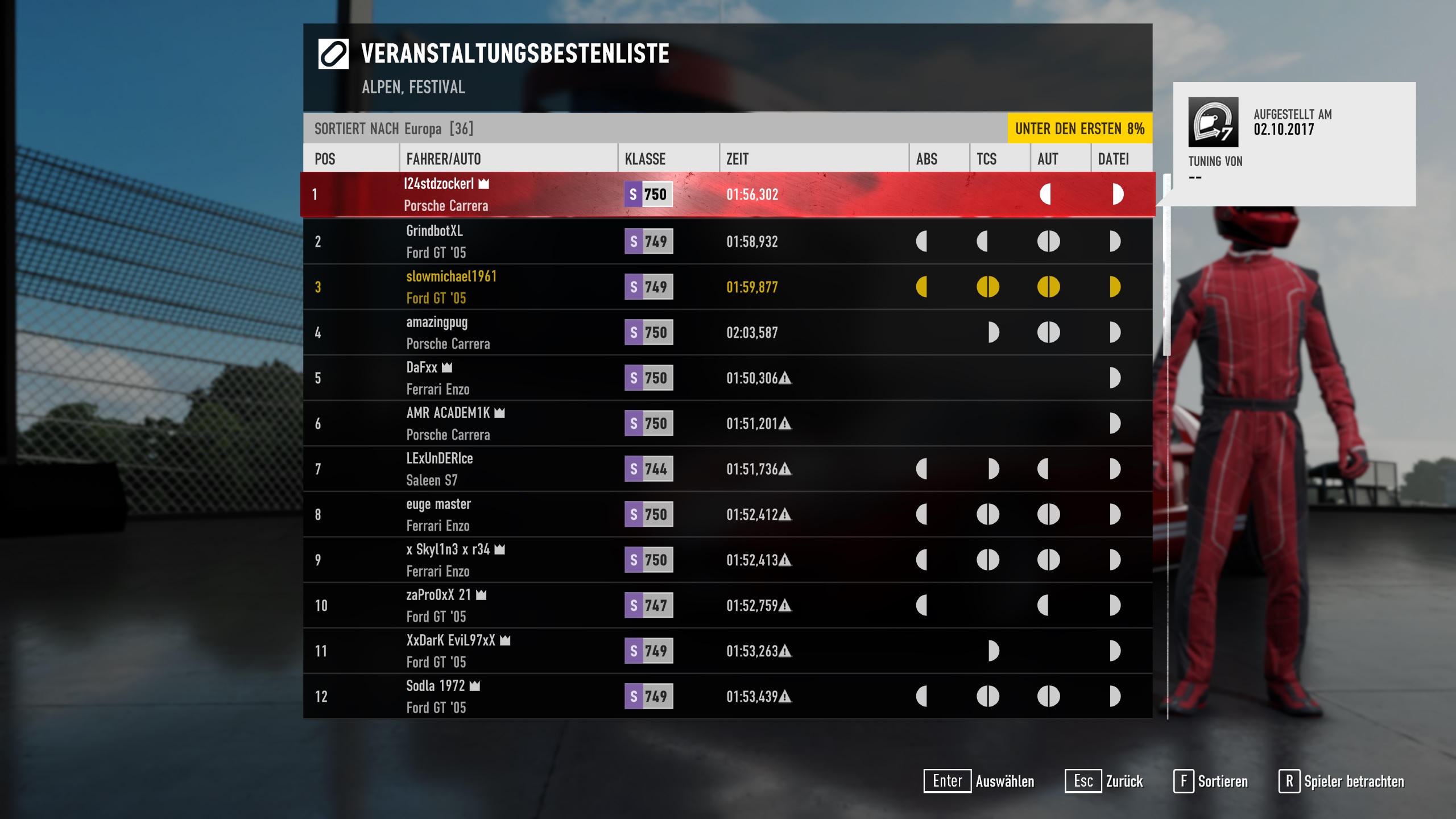 hab mal einfach drei runden mit einer standart hot hatch karre in den alpen gefahren und dann taucht auch nur diese gruppe in der bestenliste auf.
