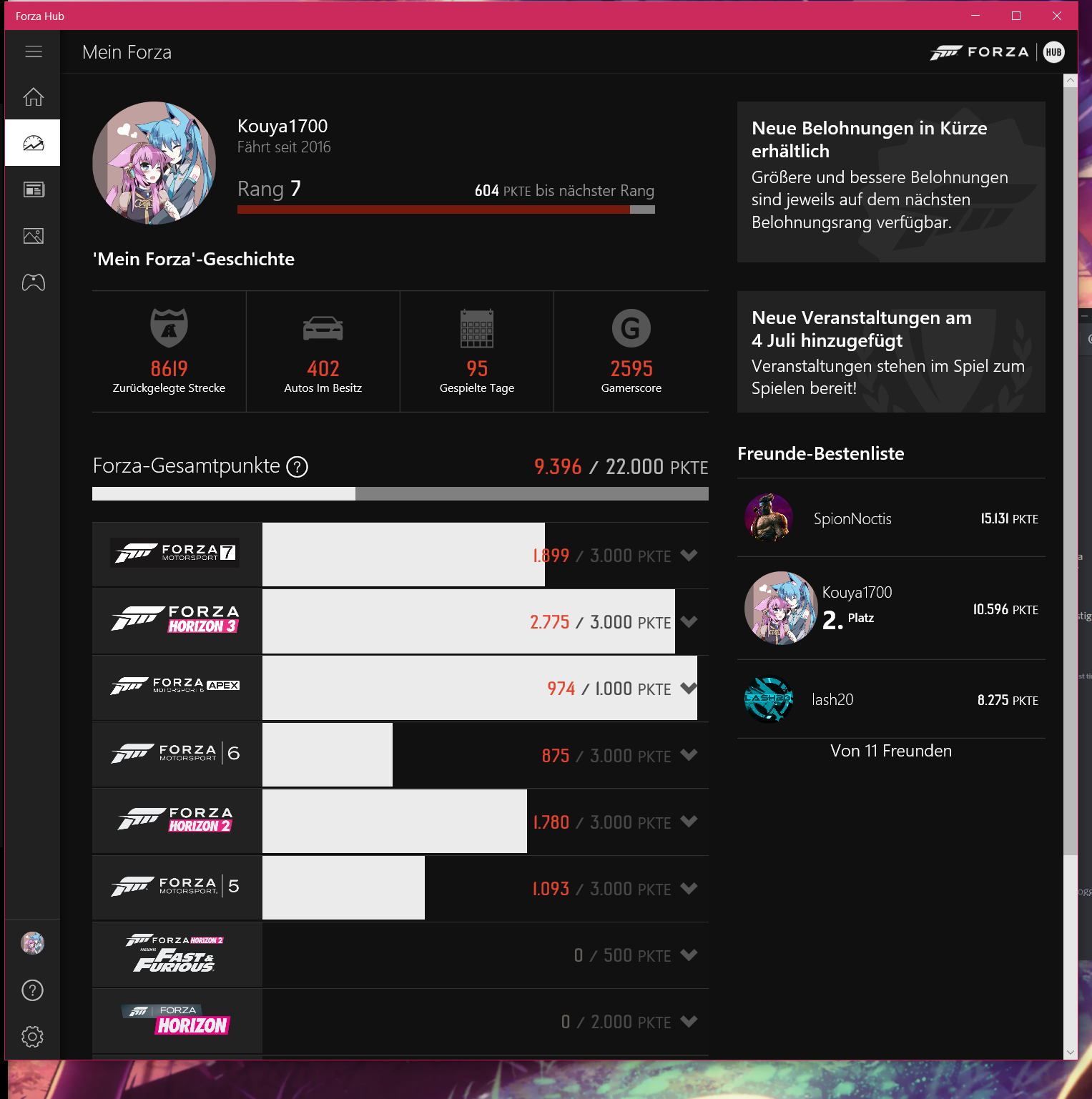 Hat noch irgendwer das Problem das bei FM7 das Game an sich wunderbar läuft aber das Menü teilweise hier und da hakt ? Ganz schlimm wenn man autos kaufen möchte. Spiele in 4k auf anschlag mit einigen dynamischen ausnahmen. Und das Spiel scheint in rennen recht sparsam zu sein. teilweise nur 60-80% GPU Last mit einer 1070.