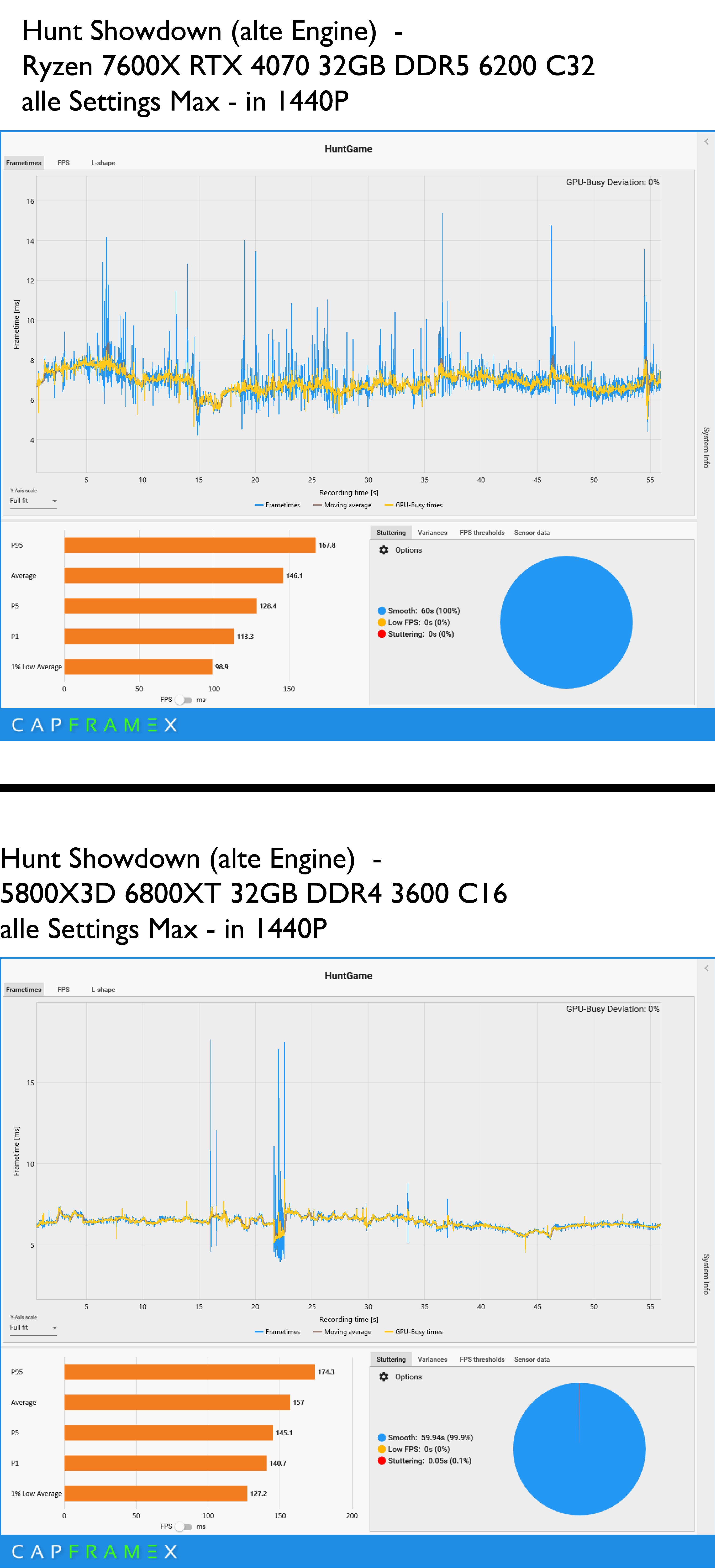 Ich hab mal einen 30 sek run in 1440P in Hunt gemacht. Daytime, Gasworks