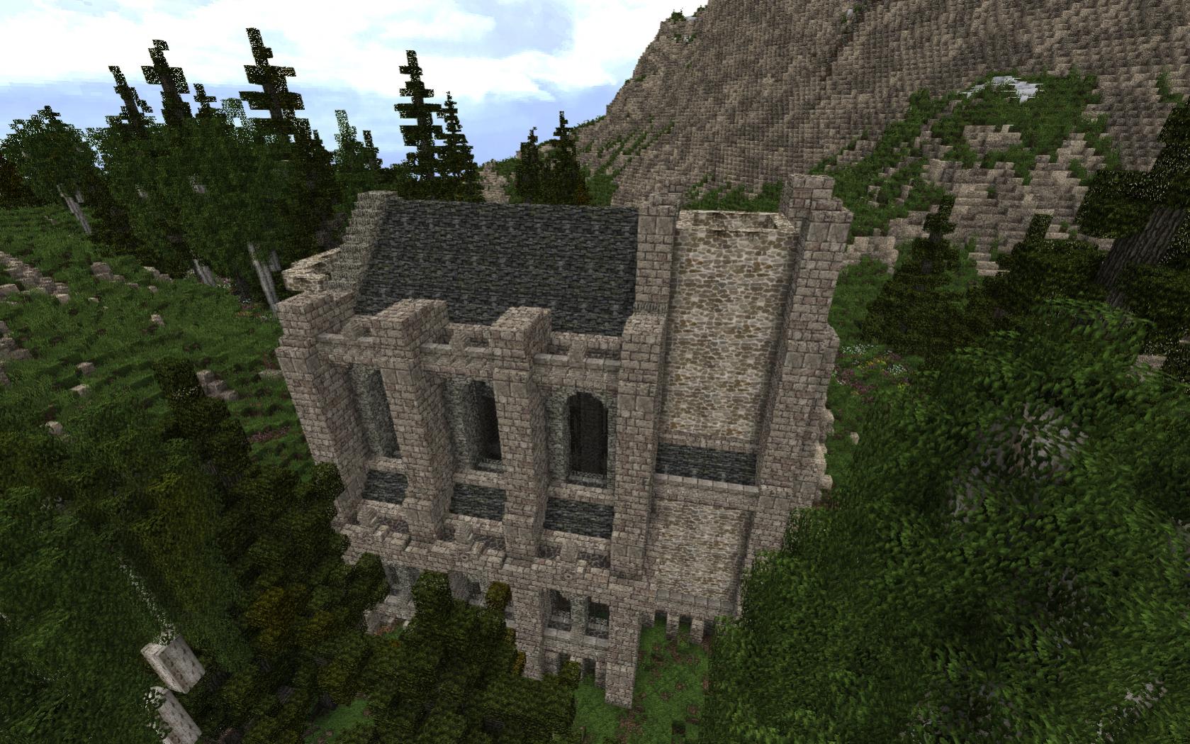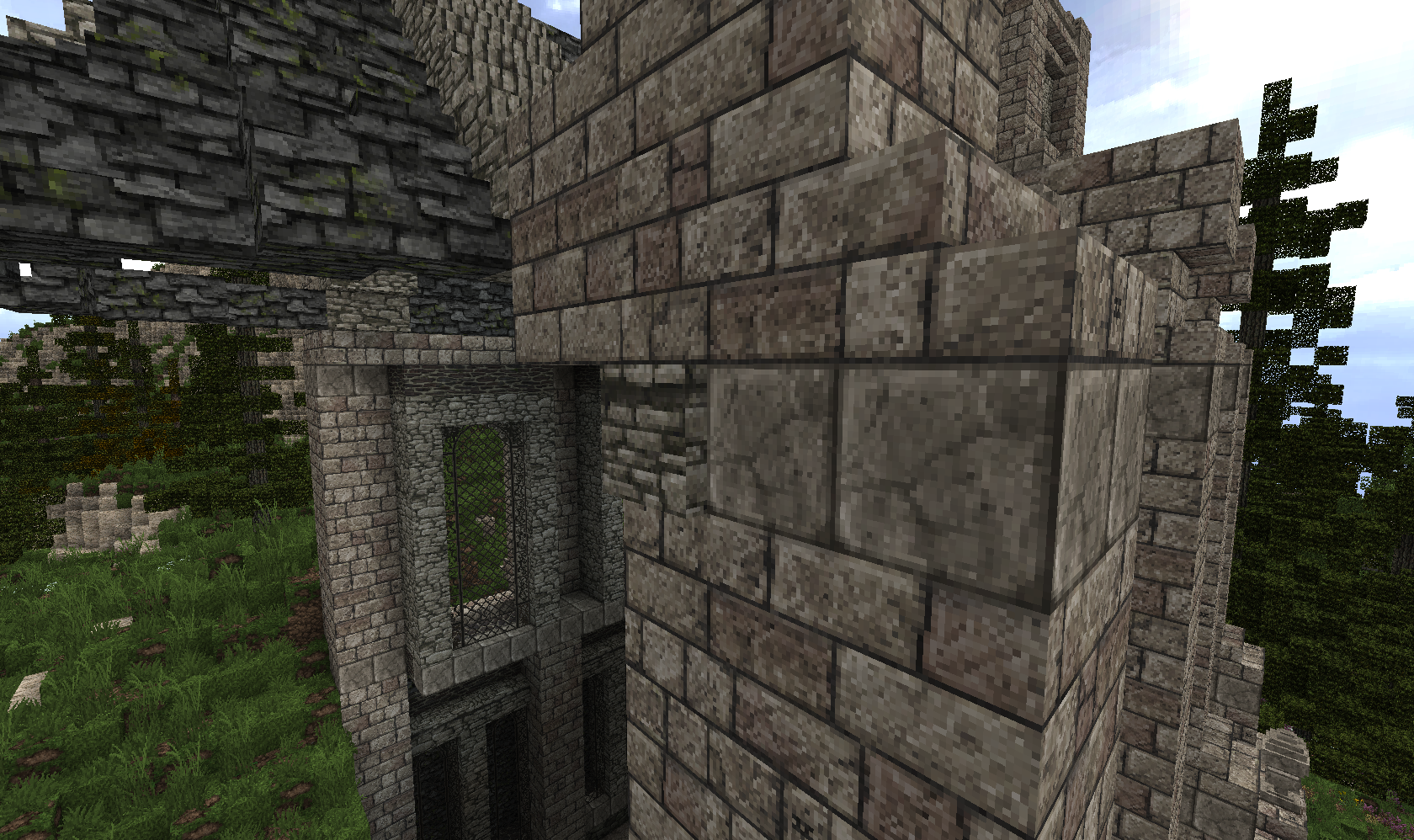 Aber nicht auf dieser Map. Da bräuchte ich dann auch ganz dünne Blöcke. Eigentlich müsste ja der Boden der Galerie mit den Querstreben auf eine Dicke von einer Slab passen und der Boden ohne den Trägern dürfte maximal die Dicke einer Falltür haben. Für die Säulen in der Mitte des Raumes bräuchte ich Wandslabs, damit die Säulen quasi mittig auf 2 Quadraten stehen. Kurzum, mit entsprechenden Mods kann man auch gleich neu bauen. Die Stützen an der Außenfassade sind ja auch unterschiedlich breit und die Fenster sind unterschiedlich hoch eingebaut.