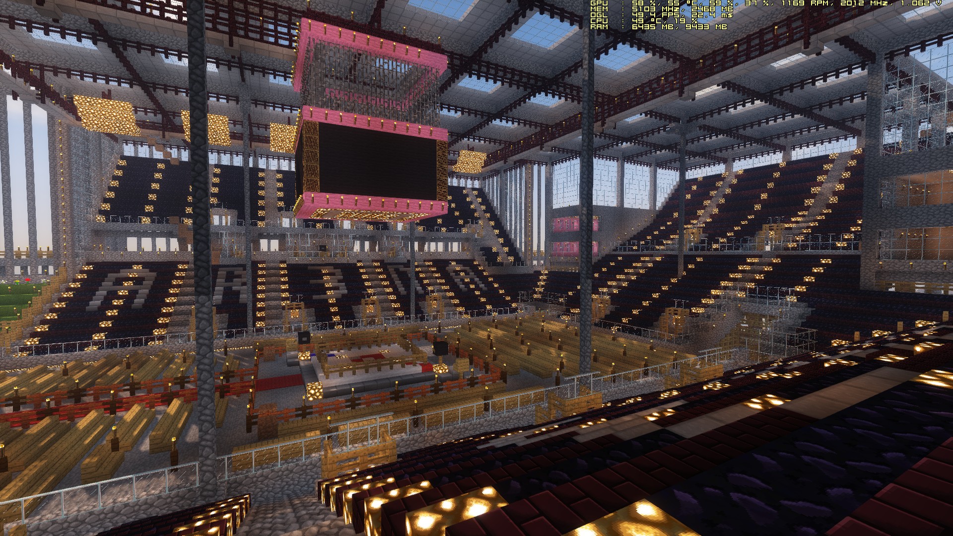 Derzeit wird die Arena weite gemacht. Unter den Tribünen wurde auf einer Seite schon die Fläche vergrößert. Toiletten werden noch verlegt. Zudem entstand da in der Ecke bei der Tribünenerweiterung die Fassade. Das alles muss auch noch auf die andere Seite. Da kommt mal der ganze Cobblestone, der hinten im Labor für die Inzuchttiere ausgehoben wurde, bzw. für die Tiefgarage.