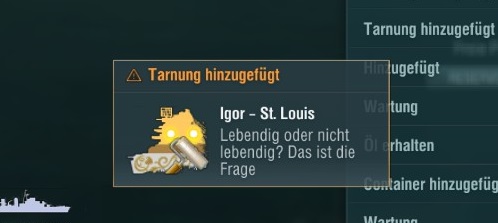 Was sind denn das hier für Tarnungen? Hatte ich gestern in 2 Containern drin. Wollte eigentlich nur kurz im Spiel was nachschauen und hab gesehen, daß das neue Unternehmen mit den T8 Schiffen jetzt frei für alle ist. Hab dann jeweils 1 Spiel mit BB und Kreuzer gemacht und diese bekommen.