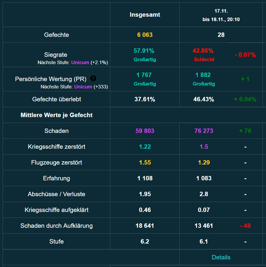 Die Statistik auf der WoWs-Seite sagt: