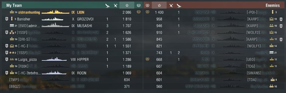 Sowohl die Moskwa als auch die Des Moines wären vom Gameplay her interessant in der Richtung, dass ich einerseits gerne mal wieder ein "Sniper"-Schiff spielen würde, andererseits gerne den Spotterplane-Build von Yuro aus Spaß mal testen.
